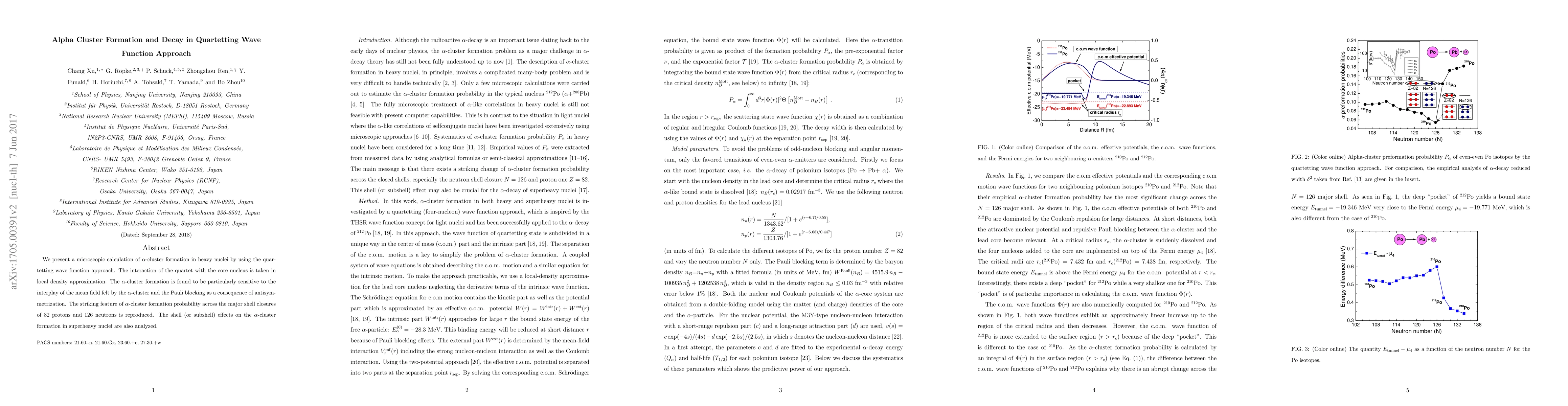 We present a microscopic calculation of alpha-cluster formation in heavy nuclei by using the quartetting wave function approach. The interaction of the quartet with the core nucleus is taken in local density approximation. The alpha-cluster formation is found to be particularly sensitive to the interplay of the mean field felt by the alpha-cluster and the Pauli blocking as a consequence of antisymmetrization. The striking feature of alpha-cluster formation probability across the major shell closures of 82 protons and 126 neutrons is reproduced. The shell (or subshell) effects on the alpha-cluster formation in superheavy nuclei are also analyzed.