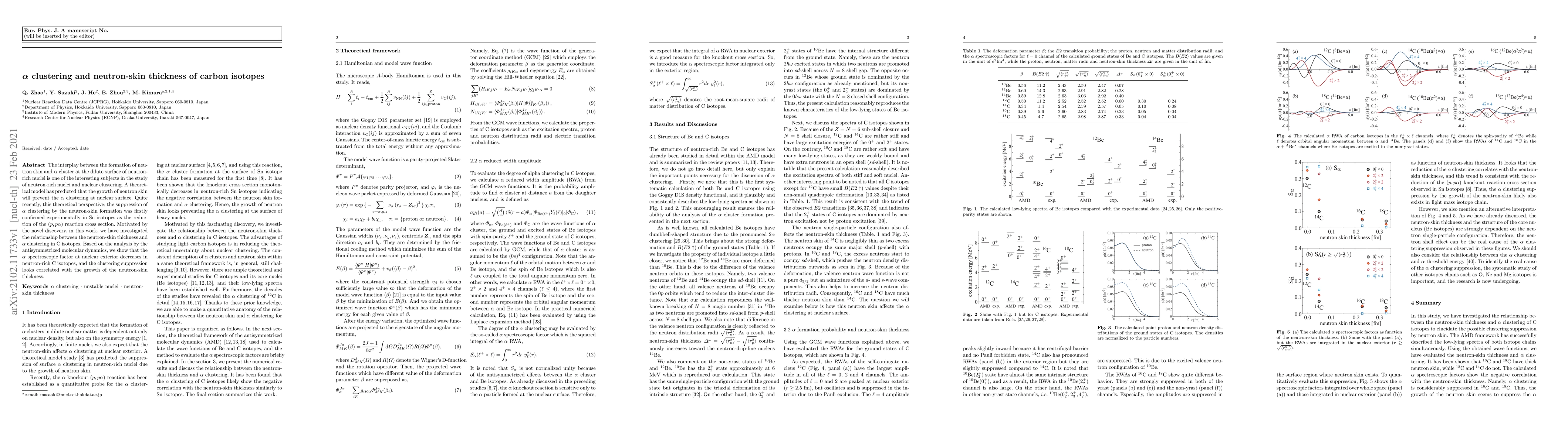 Researchers investigated the relationship between neutron skin thickness and alpha clustering in carbon isotopes using antisymmetrized molecular dynamics, finding a correlation between clustering suppression and growing neutron skin thickness.