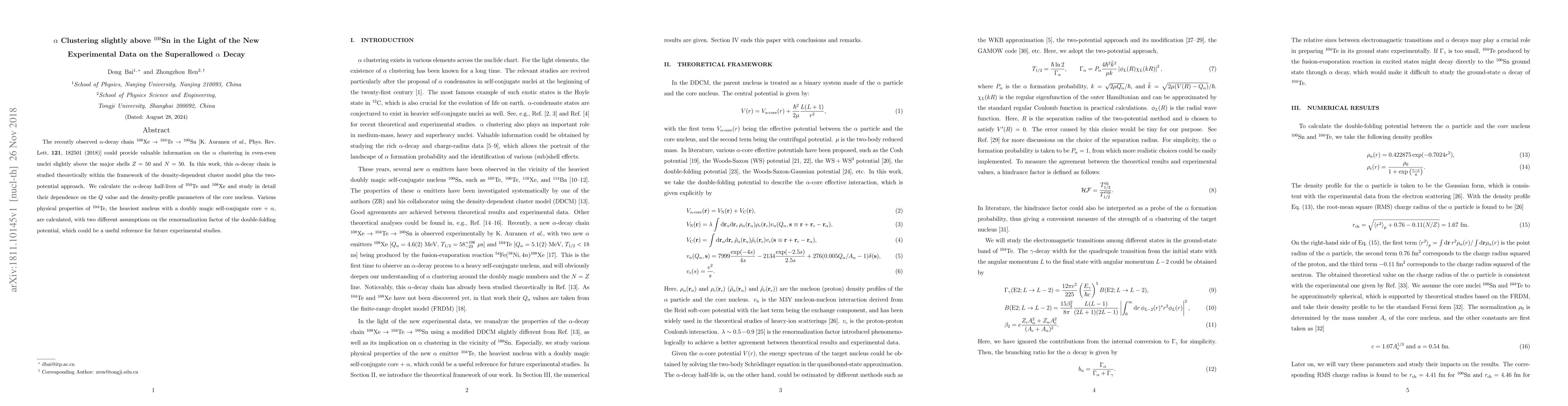 The recently observed $\alpha$-decay chain ${}^{108}\text{Xe}\to{}^{104}\text{Te}\to{}^{100}\text{Sn}$ [K.~Auranen \emph{et al.}, Phys.\ Rev.\ Lett.\ {\bf121}, 182501 (2018)] could provide valuable information on the $\alpha$ clustering in even-even nuclei slightly above the major shells $Z=50$ and $N=50$. In this work, this $\alpha$-decay chain is studied theoretically within the framework of the density-dependent cluster model plus the two-potential approach. We calculate the $\alpha$-decay half-lives of ${}^{104}$Te and ${}^{108}$Xe and study in detail their dependence on the $Q$ value and the density-profile parameters of the core nucleus. Various physical properties of ${}^{104}$Te, the heaviest nucleus with a doubly magic self-conjugate core $+$ $\alpha$, are calculated, with two different assumptions on the renormalization factor of the double-folding potential, which could be a useful reference for future experimental studies.