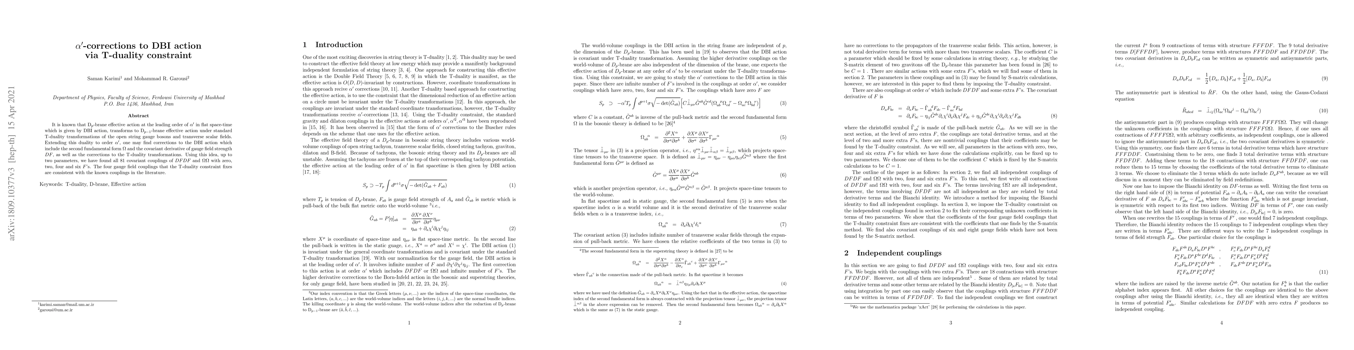 This paper investigates $\alpha'$ corrections to the Dirac-Born-Infeld (DBI) action via T-duality, uncovering 81 covariant couplings involving the second fundamental form and gauge field derivatives. The findings align with existing literature on four gauge field couplings constrained by T-duality.