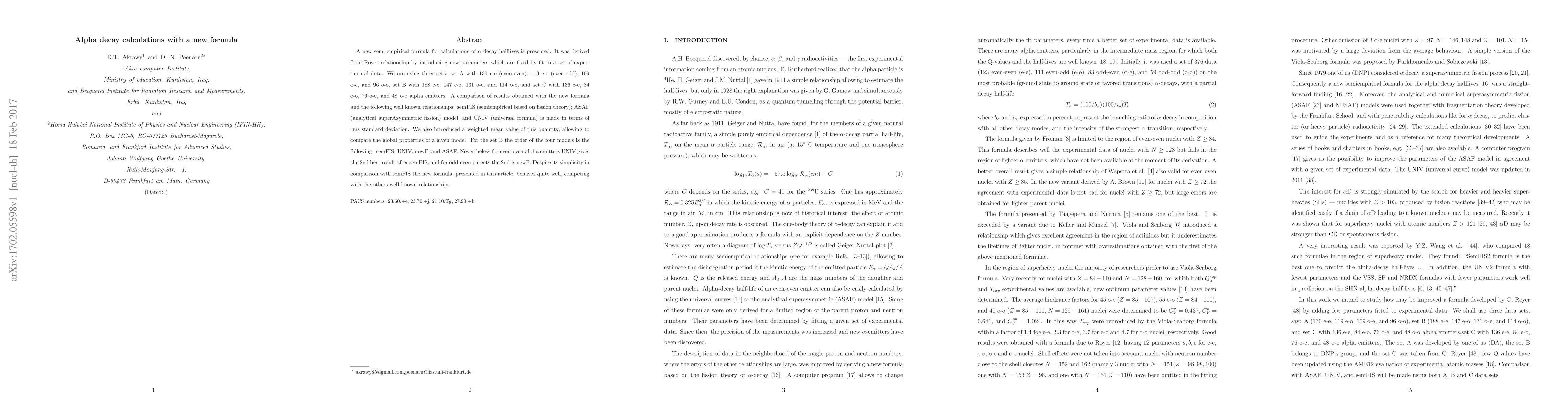 This research introduces a new semi-empirical formula for calculating alpha decay half-lives, derived from the Royer relationship. It outperforms or competes with established models like semFIS, ASAF, and UNIV, particularly for even-even alpha emitters and odd-even parents, according to rms standard deviation comparisons.