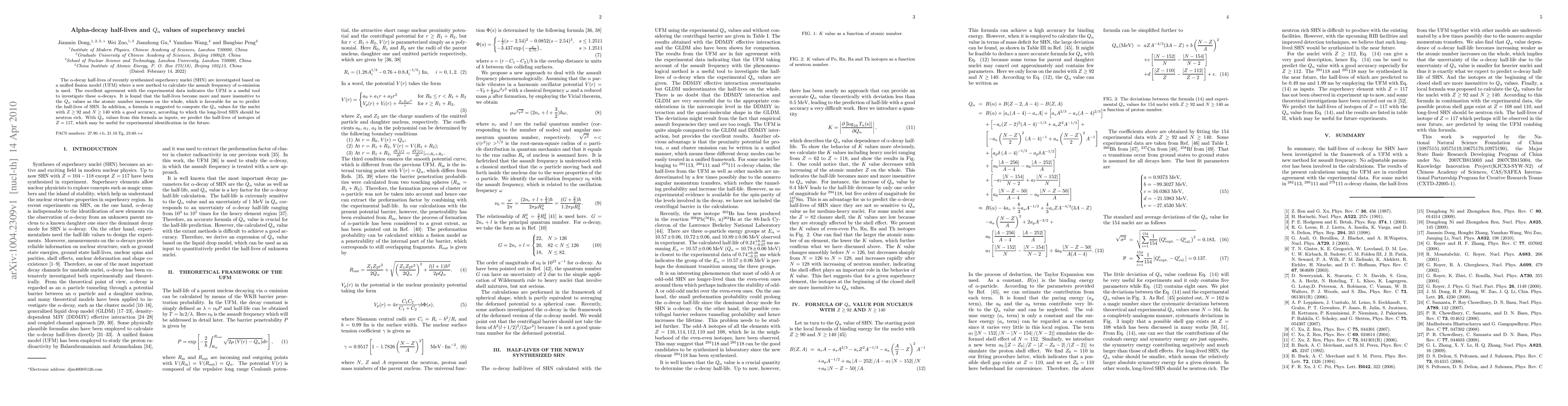 This paper investigates alpha-decay half-lives of superheavy nuclei using a unified fission model, finding that half-lives are less sensitive to Q_alpha values as atomic number increases. A formula is proposed to accurately compute Q_alpha values for superheavy nuclei, predicting long-lived isotopes to be neutron-rich and suggesting potential half-lives for Z = 117 isotopes.