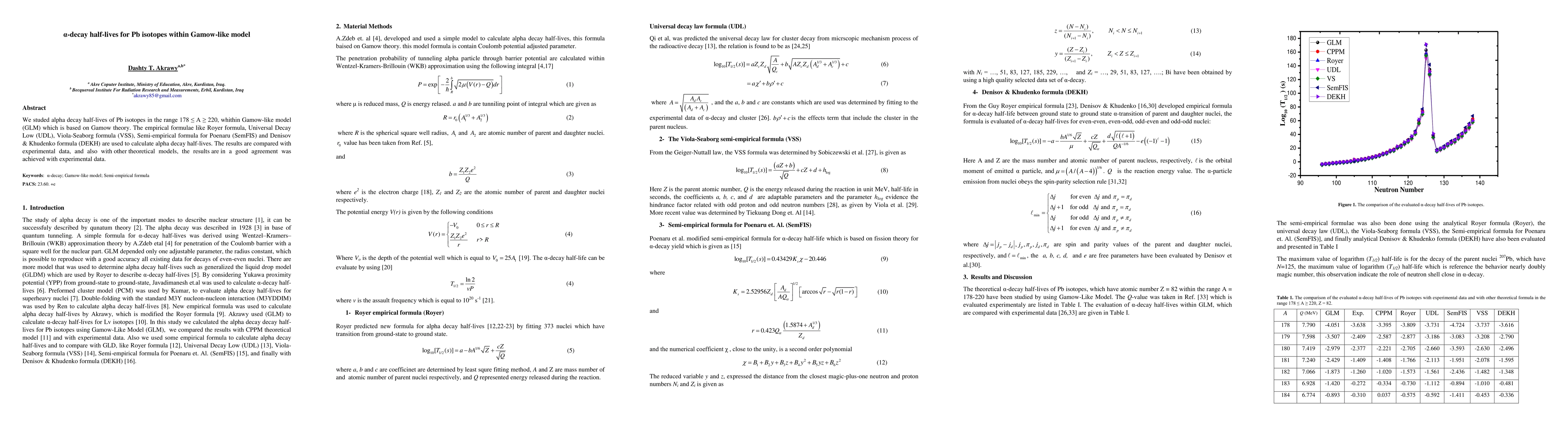 Researchers used the Gamow-like model to calculate alpha decay half-lives for lead isotopes and achieved good agreement with experimental data, comparing favorably to results from other theoretical models.