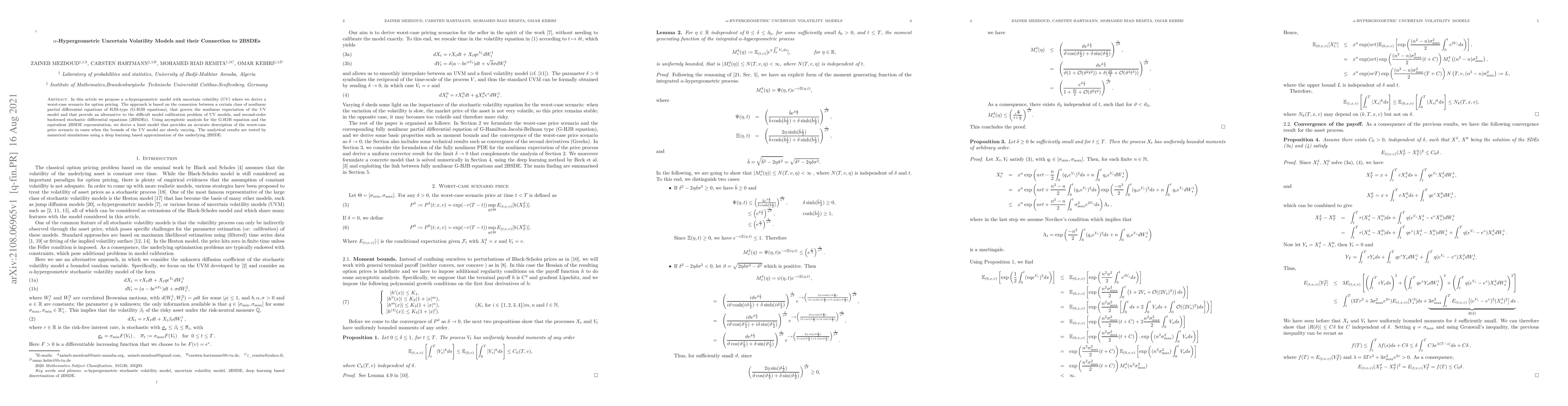 This paper proposes a $\alpha$-hypergeometric model for uncertain volatility, deriving a worst-case scenario for option pricing through connections to second-order backward stochastic differential equations (2BSDEs). It uses G-HJB equations and asymptotic analysis to develop a limit model for accurate pricing when volatility bounds vary slowly, validated by deep learning-based simulations.