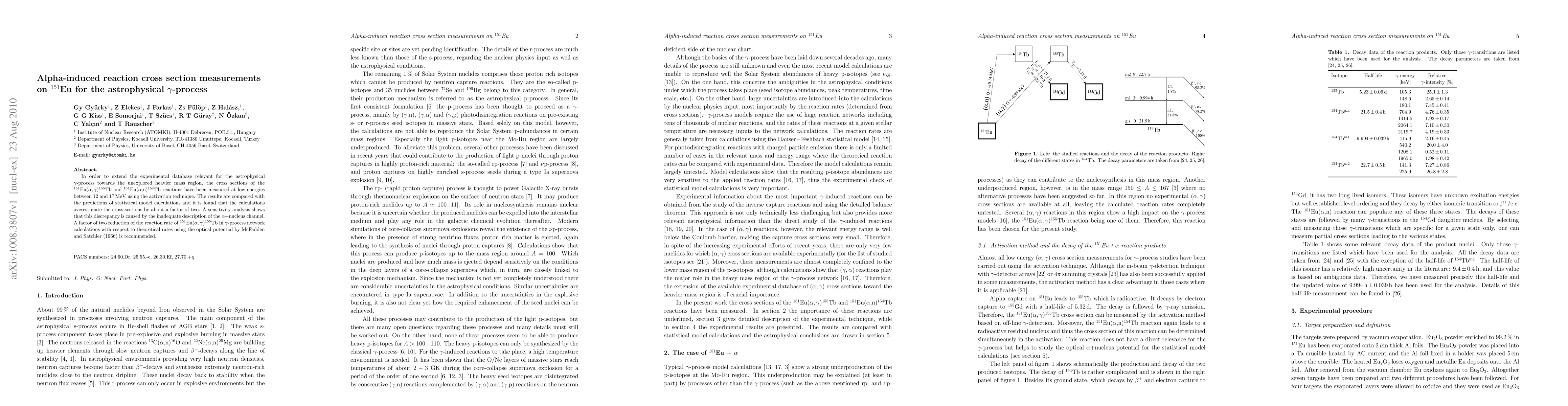 This study measures the cross sections for alpha-induced reactions on 151Eu relevant to the astrophysical gamma-process, finding that statistical model calculations overestimate the cross sections by a factor of two due to an inadequate description of the alpha+nucleus interaction. A revised reaction rate for the 151Eu(alpha,gamma)155Tb reaction is recommended to reduce theoretical discrepancies.