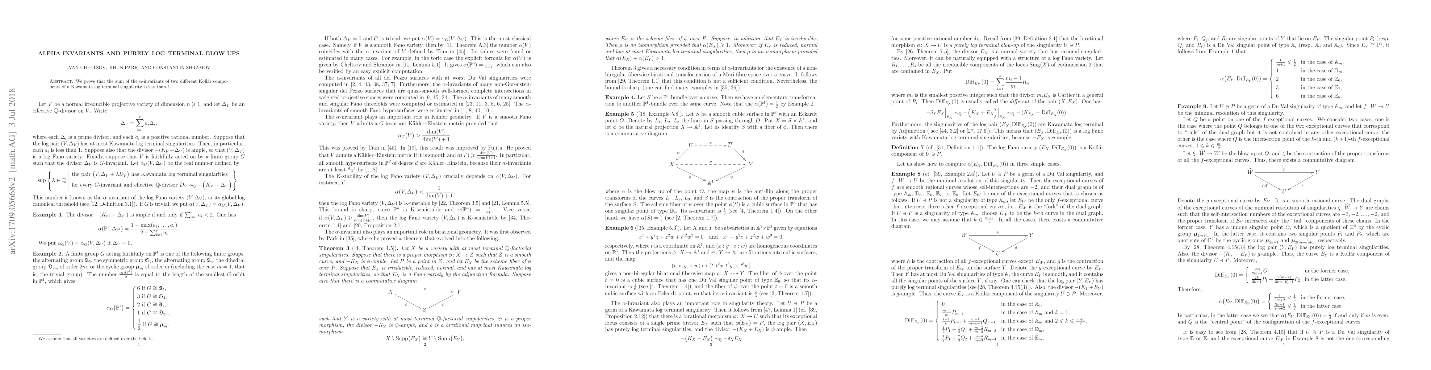 Summary: The paper proves that the sum of $\alpha$-invariants for two distinct Kollár components in a Kawamata log terminal singularity is strictly less than 1. This insight contributes to understanding the behavior of alpha-invariants in purely log terminal blow-ups.
