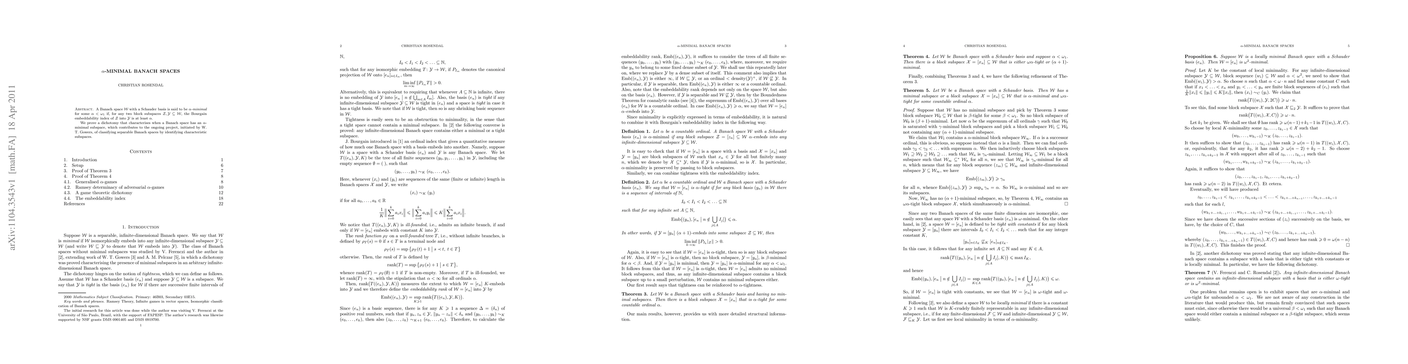 The paper proves a dichotomy determining when a Banach space contains an $\alpha$-minimal subspace, contributing to the classification of separable Banach spaces by identifying their characteristic subspaces. This builds on the foundational work of W. T. Gowers in the field.