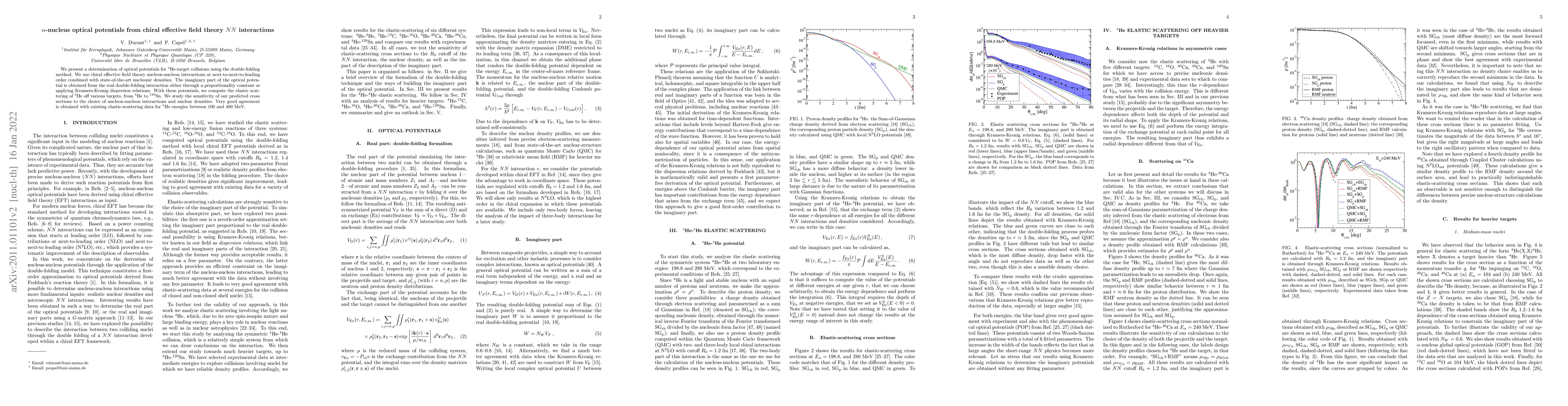 We present a determination of optical potentials for $^4$He-target collisions using the double-folding method. We use chiral effective field theory nucleon-nucleon interactions at next-to-next-to-leading order combined with state-of-the-art nucleonic densities. The imaginary part of the optical potential is obtained from the real double-folding interaction either through a proportionality constant or applying Kramers-Kronig dispersion relations. With these potentials, we compute the elastic scattering of $^4$He off various targets, from $^4$He to $^{120}$Sn. We study the sensitivity of our predicted cross sections to the choice of nucleon-nucleon interactions and nuclear densities. Very good agreement is obtained with existing elastic-scattering data for $^4$He energies between 100 and 400 MeV.
