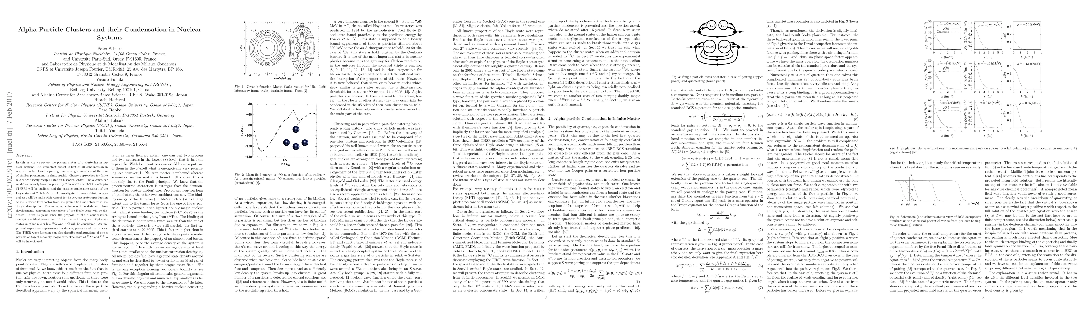 This paper reviews alpha clustering and condensation in nuclear systems, focusing on the THSR model and its implications for the Hoyle state in 12C. It critically assesses the concept of alpha condensation, explores alpha gas states in 16O and 13C, and examines configurations of one alpha particle on top of doubly magic cores in 20Ne and 212Po.