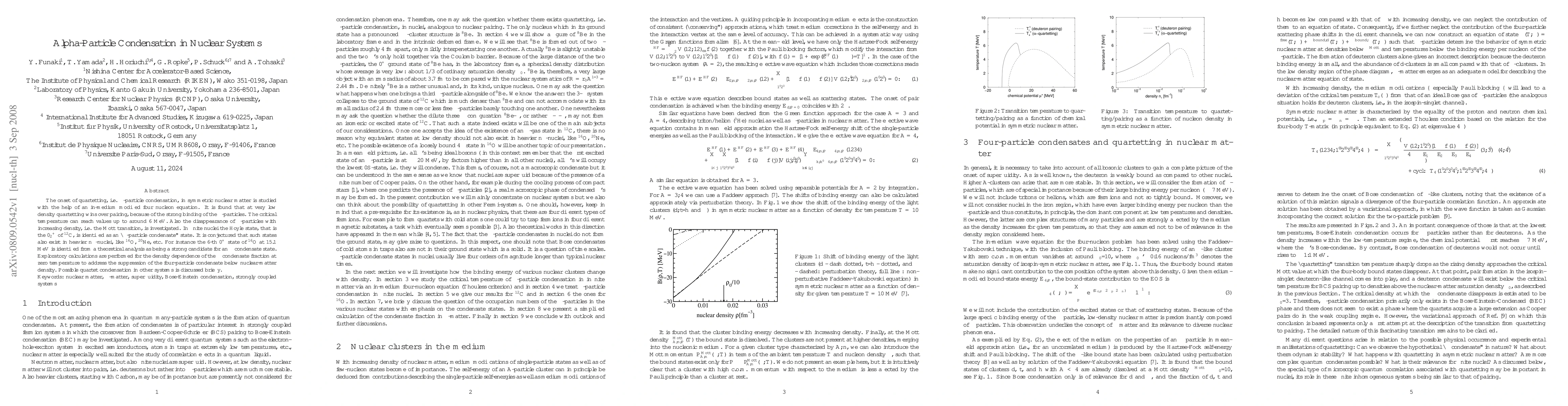 The paper presents a detailed analysis of alpha-particle condensation in nuclear systems using an in-medium modified four-nucleon equation and the OCM, identifying potential alpha condensate states in various nuclei.