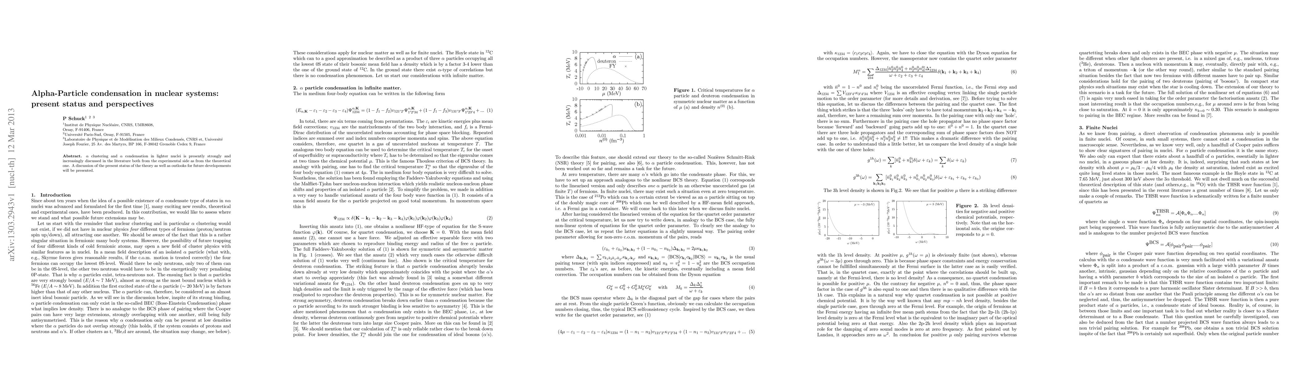 Alpha clustering and alpha condensation in lighter nuclei is presently strongly and increasingly discussed in the literature both from the experimental side as from the theoretical one. A discussion of the present status of the theory as well as outlooks for future developements will be presented.
