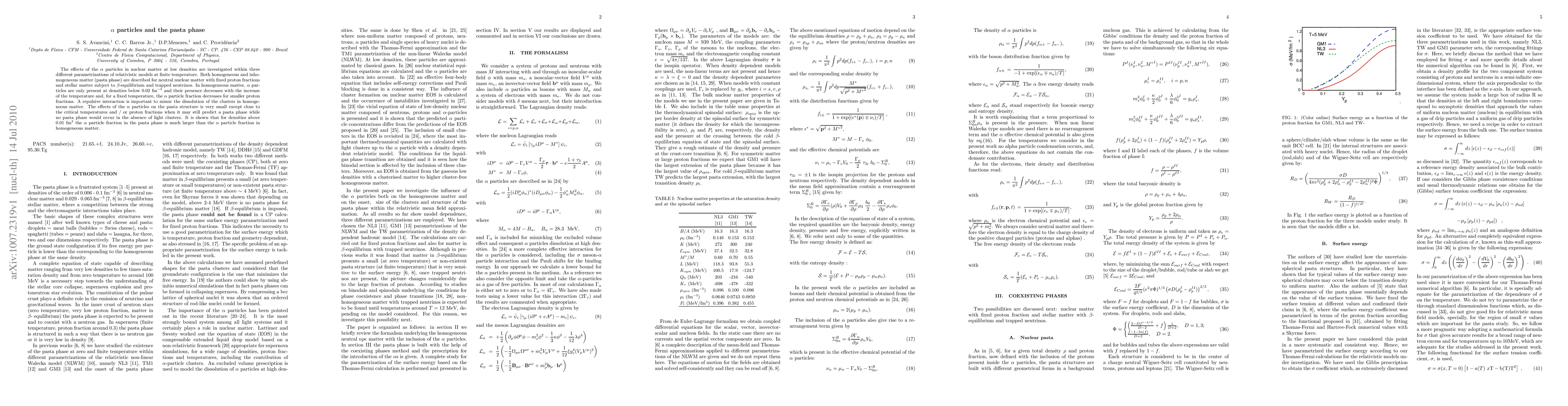 The effects of the $\alpha$ particles in nuclear matter at low densities are investigated within three different parametrizations of relativistic models at finite temperature. Both homogeneous and inhomogeneous matter (pasta phase) are described for neutral nuclear matter with fixed proton fractions and stellar matter subject to $\beta$-equilibrium and trapped neutrinos. In homogeneous matter, $\alpha$ particles are only present at densities below 0.02 fm$^{-3}$ and their presence decreases with the increase of the temperature and, for a fixed temperature, the $\alpha$ particle fraction decreases for smaller proton fractions. A repulsive interaction is important to mimic the dissolution of the clusters in homogeneous matter. The effects of the $\alpha$ particles on the pasta structure is very small except close to the critical temperatures and / or proton fractions when it may still predict a pasta phase while no pasta phase would occur in the absence of light clusters. It is shown that for densities above 0.01 fm$^{-3}$ the $\alpha$ particle fraction in the pasta phase is much larger than the $\alpha$ particle fraction in homogeneous matter.