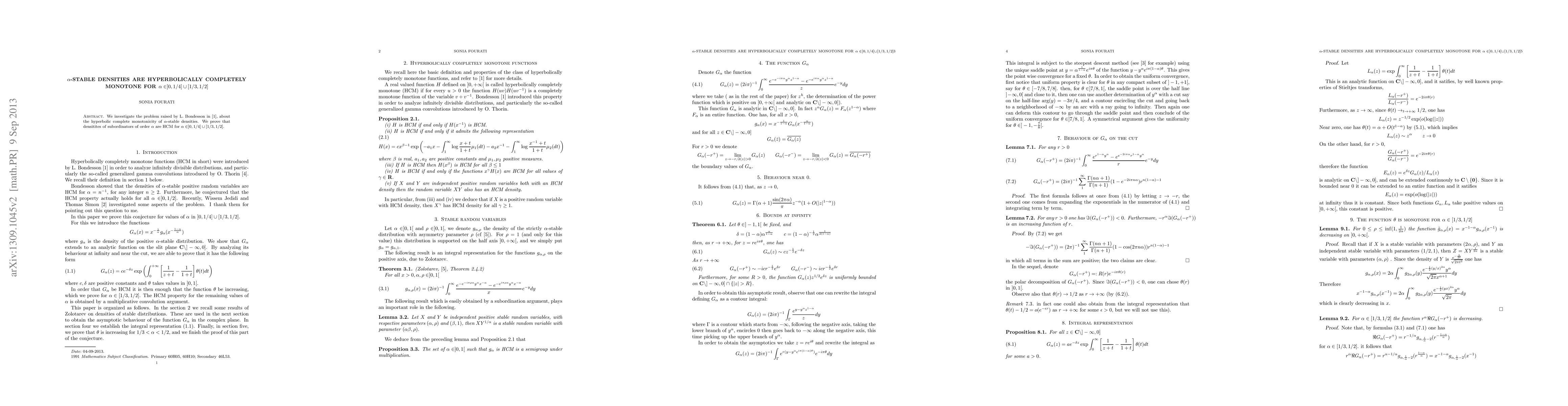 This research proves that densities of subordinators of order u03b1 are hyperbolic completely monotonic (HCM) for u03b1 in the intervals ]0,1/4] and [1/3,1/2], addressing a problem posed by L. Bondesson on u03b1-stable densities' hyperbolic complete monotonicity.