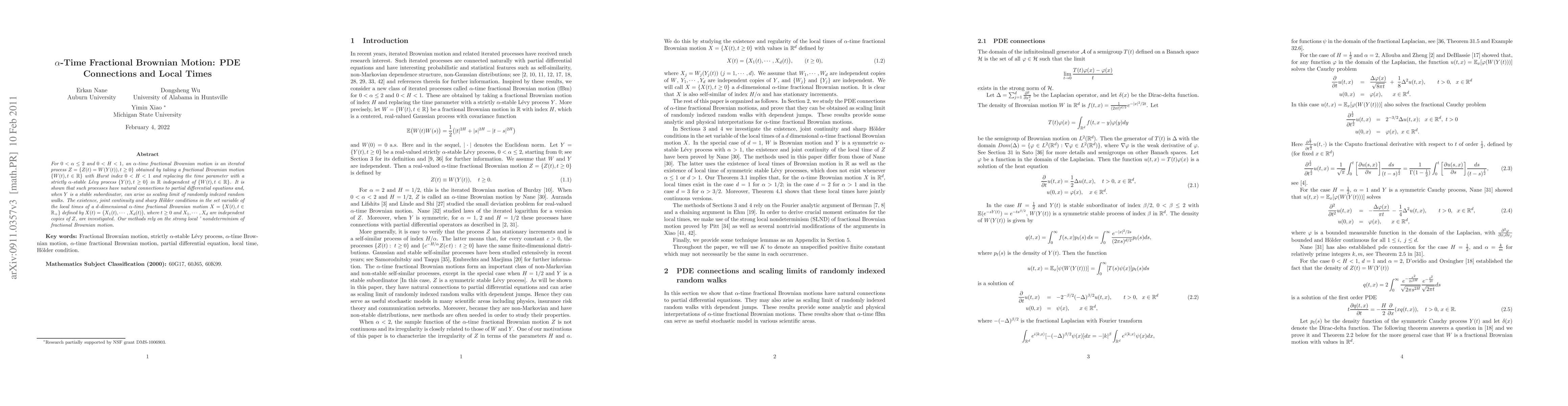 This paper explores the $\alpha$-time fractional Brownian motion, a process derived by replacing the time parameter in fractional Brownian motion with a $\alpha$-stable L\'evy process. It establishes connections between these processes and partial differential equations, and investigates the existence and properties of local times for these processes, emphasizing their strong local nondeterminism.