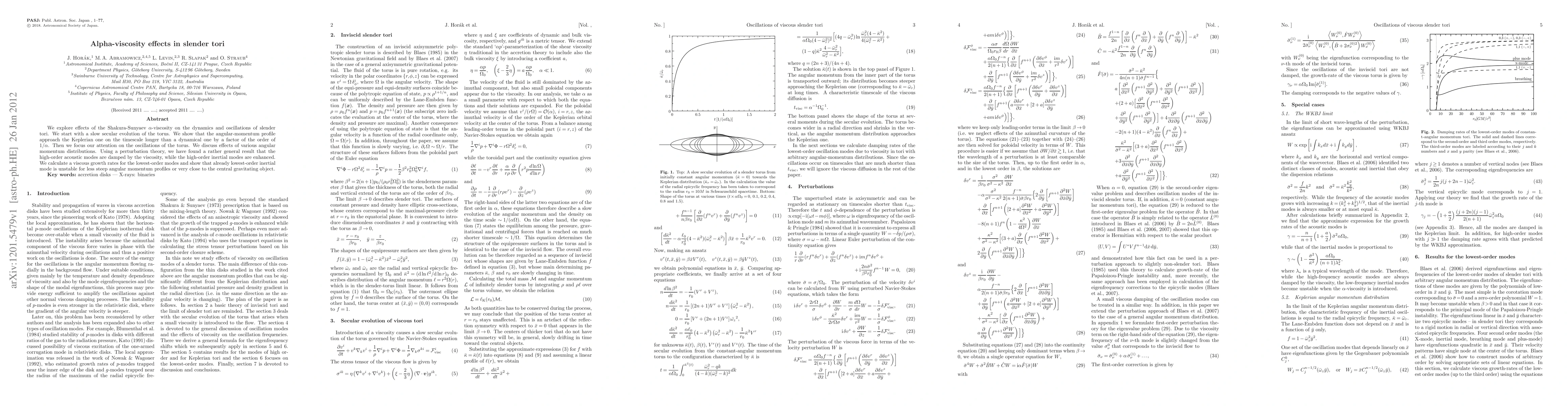This research paper explores how alpha-viscosity affects the dynamics and oscillations of slender tori in astrophysics, revealing that viscosity damps high-order acoustic modes but enhances inertial modes, leading to unstable orbits for certain angular momentum profiles.