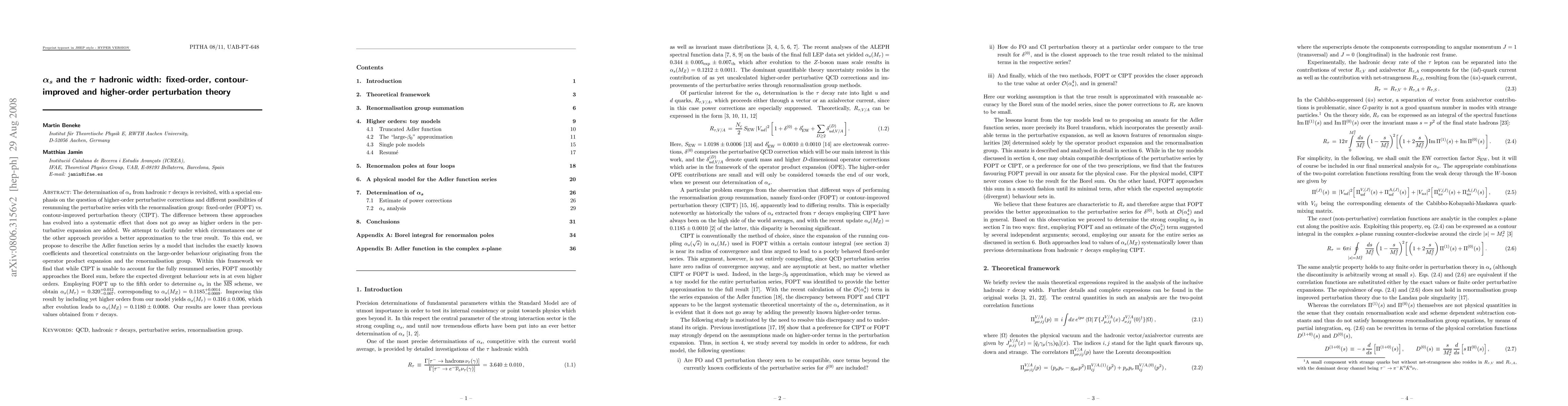 This paper revisits the determination of the strong coupling constant $\alpha_s$ from hadronic $\tau$ decays, comparing fixed-order perturbation theory (FOPT) and contour-improved perturbation theory (CIPT). The authors find that FOPT provides a better approximation to the true result, leading to a lower value of $\alpha_s$ at both $M_\tau$ and $M_Z$ compared to previous results.