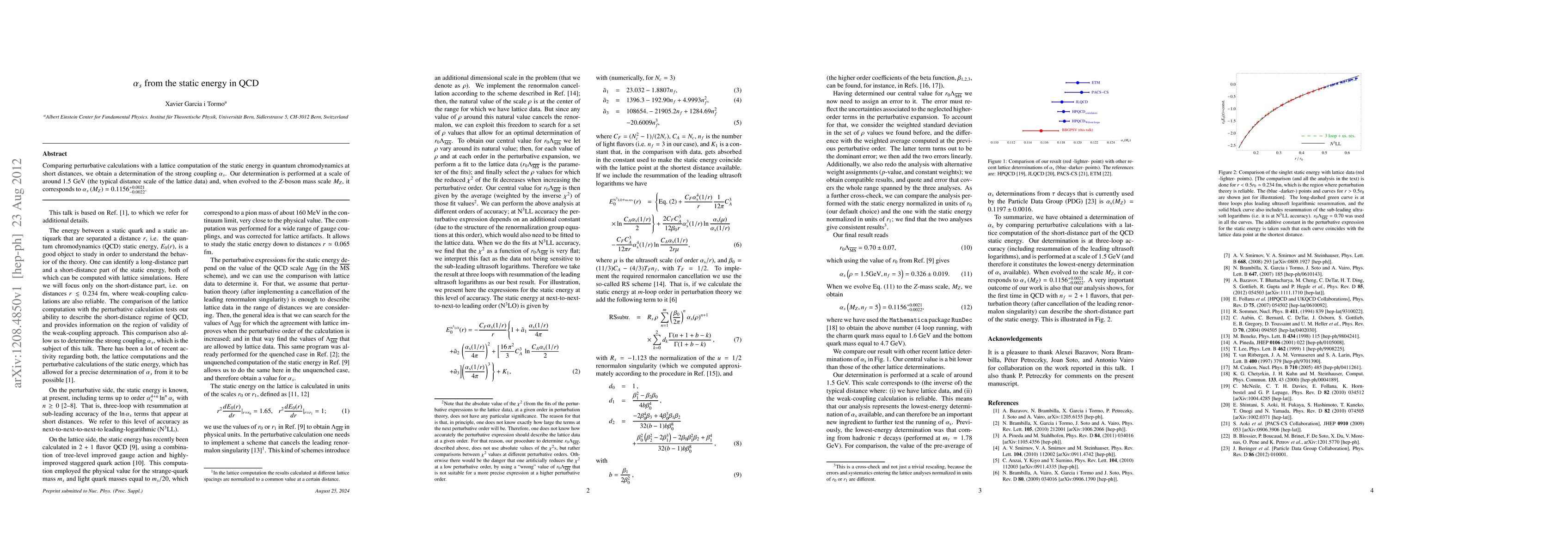 This paper determines the strong coupling constant alpha_s in QCD by comparing perturbative calculations with lattice computations of static energy at short distances, yielding alpha_s(M_Z) = 0.1156^{+0.0021}_{-0.0022} when evolved to the Z-boson mass scale.