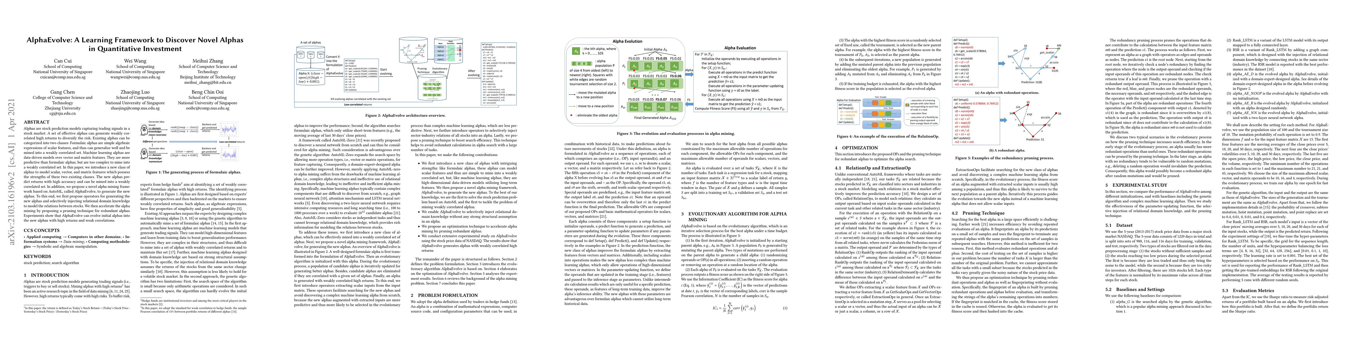AlphaEvolve introduces a novel learning framework to discover advanced alphas for quantitative investment, combining the strengths of formulaic and machine learning alphas. The framework leverages AutoML to generate and mine these new alphas, achieving high return predictions and weak correlations, thereby diversifying investment risk.