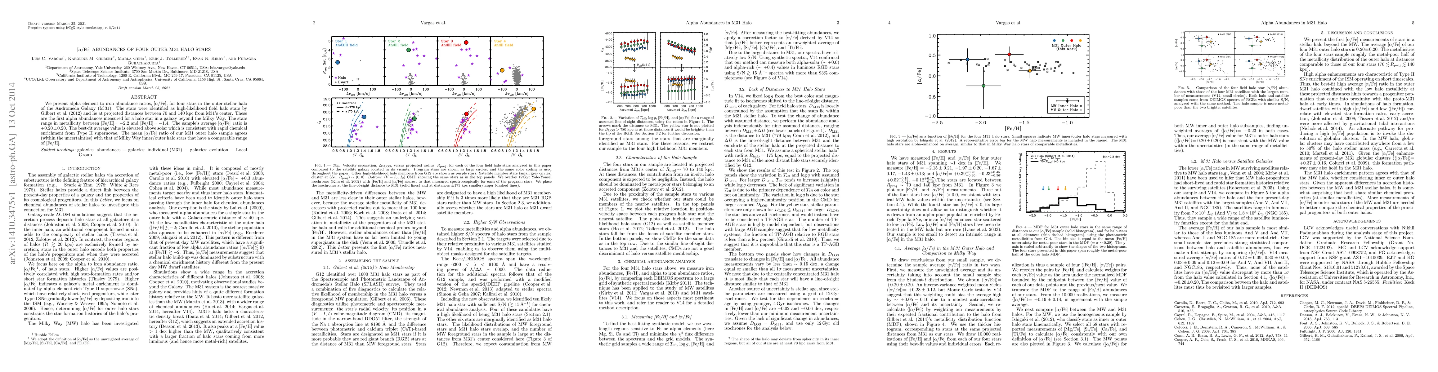 This study measures [$\alpha$/Fe] ratios for four outer halo stars in M 31, finding an average elevated above solar, consistent with rapid Type II supernova enrichment. The [$\alpha$/Fe] ratio of M 31's outer halo matches that of Milky Way's comparable halo stars.