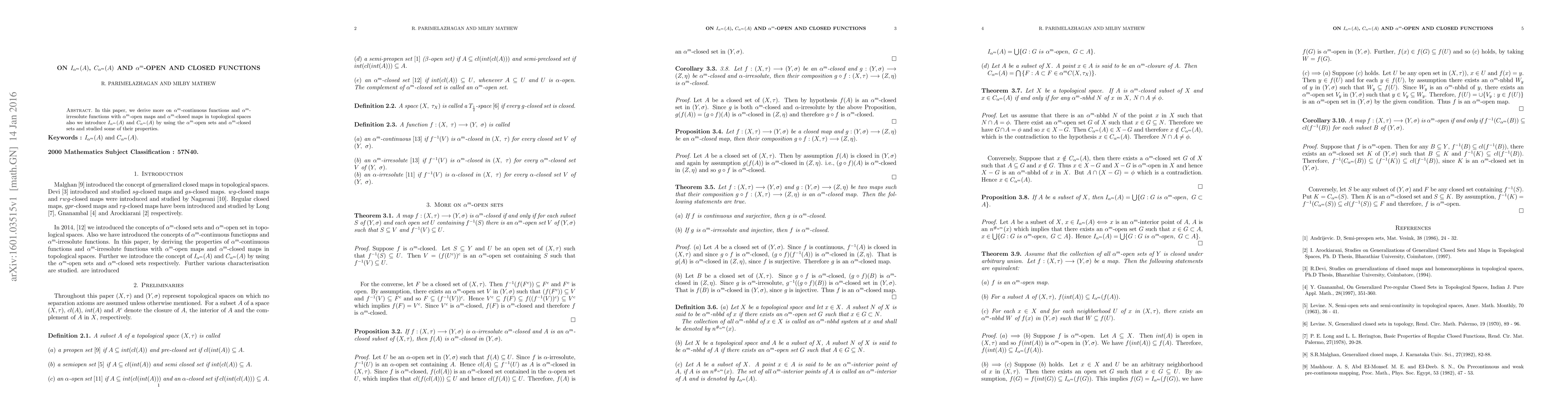 In this paper, we derive more on $\alpha^{m}$-continuous functions and $\alpha^{m}$-irresolute functions with $\alpha^{m}$-open maps and $\alpha^{m}$-closed maps in topological spaces also we introduce $I_{\alpha^{m}}(A)$ and $C_{\alpha^{m}}(A)$ by using the $\alpha^{m}$-open sets and $\alpha^{m}$-closed sets and studied some of their properties.