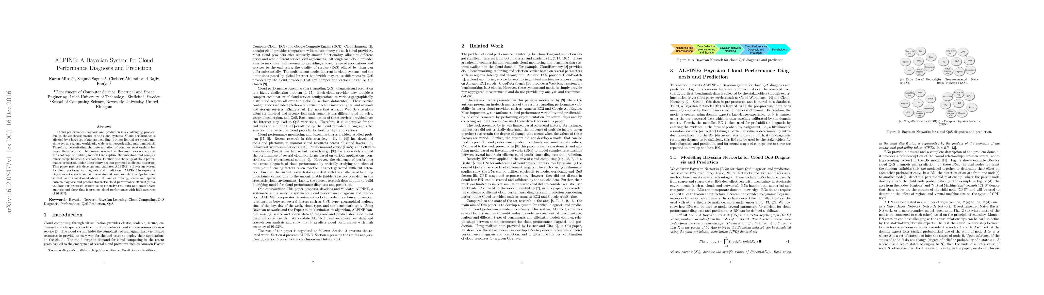 The paper introduces ALPINE, a Bayesian system designed to diagnose and predict cloud performance by modeling complex relationships between various factors. The system effectively handles uncertainty and sparse data, achieving a high prediction accuracy of 91.93% through extensive real data validation.
