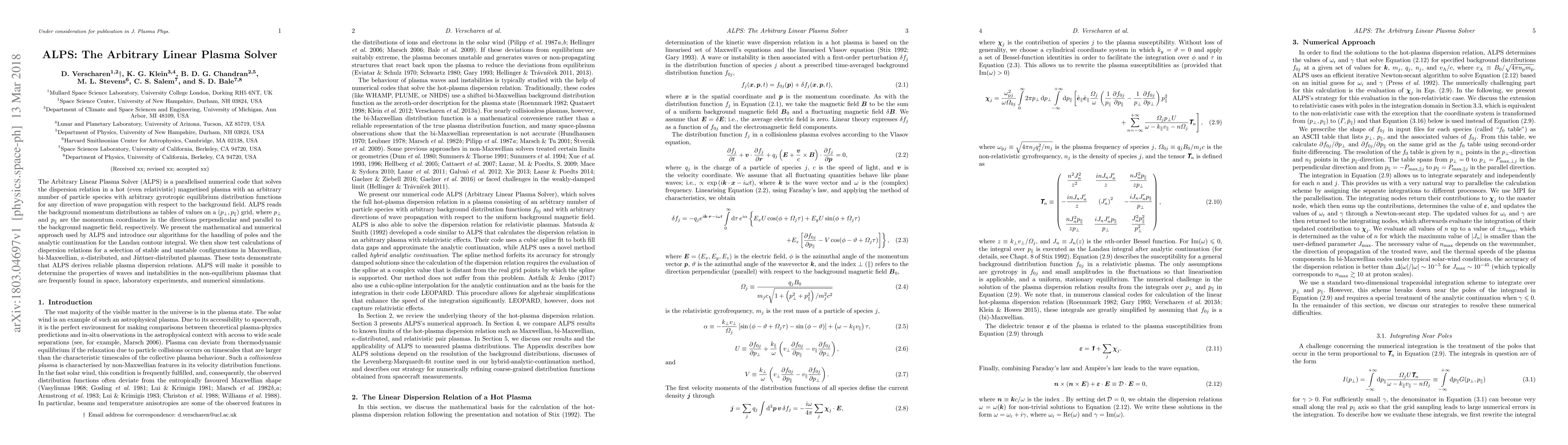 The ALPS code solves dispersion relations for hot plasmas with arbitrary particle species and gyrotropic distributions, providing reliable plasma properties in space, experiments, and simulations.
