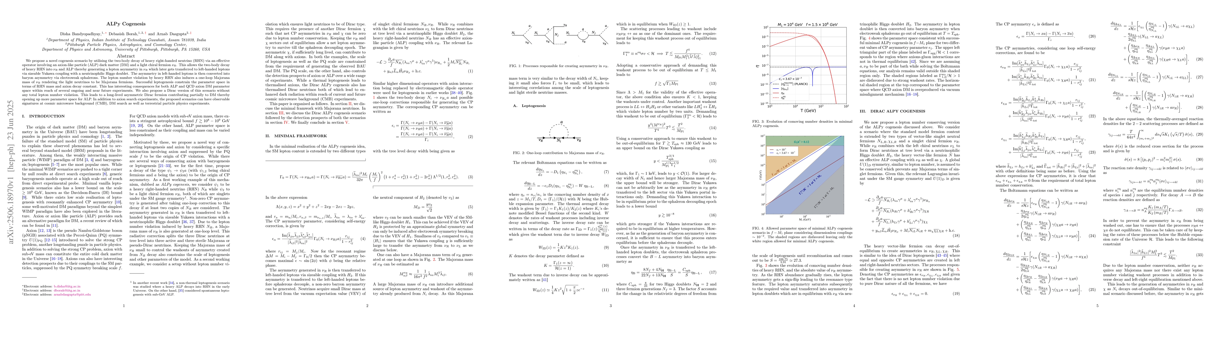 The paper proposes a new scenario where heavy right-handed neutrinos decay into light fermions and axion-like particles, generating lepton asymmetry that transfers to baryon asymmetry. This process also gives Majorana masses to light neutrinos, making them Majorana fermions. The scenario has implications for both axion and QCD axion dark matter, with potential observable effects in experiments and cosmic microwave background observations.