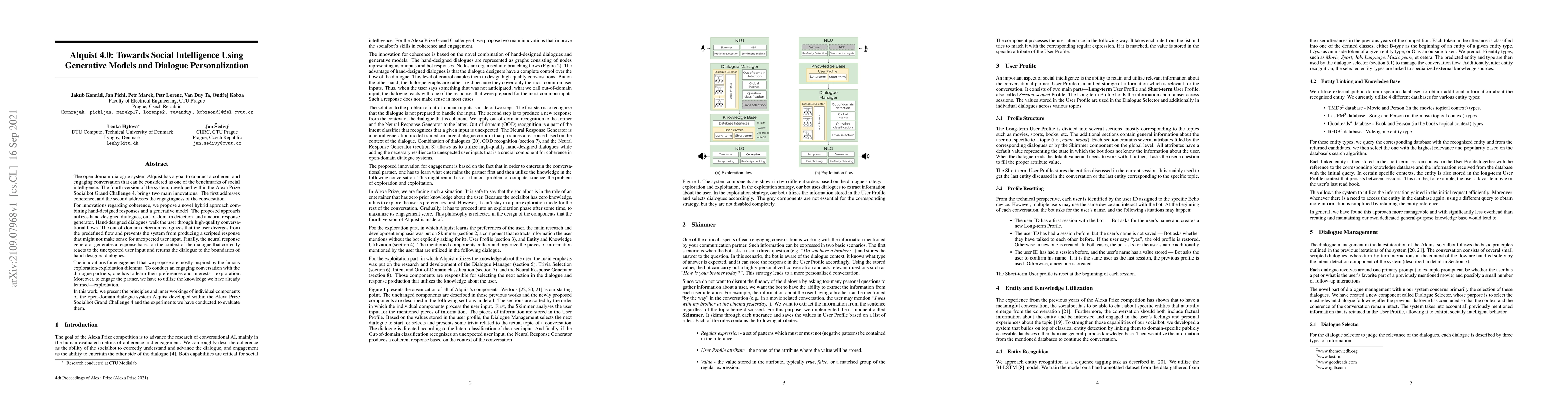 Alquist 4.0 introduces a hybrid approach combining hand-designed dialogues and a generative model for coherence and an exploration-exploitation strategy for engagement in open-domain dialogue. The system aims to benchmark social intelligence through coherent and engaging conversations.