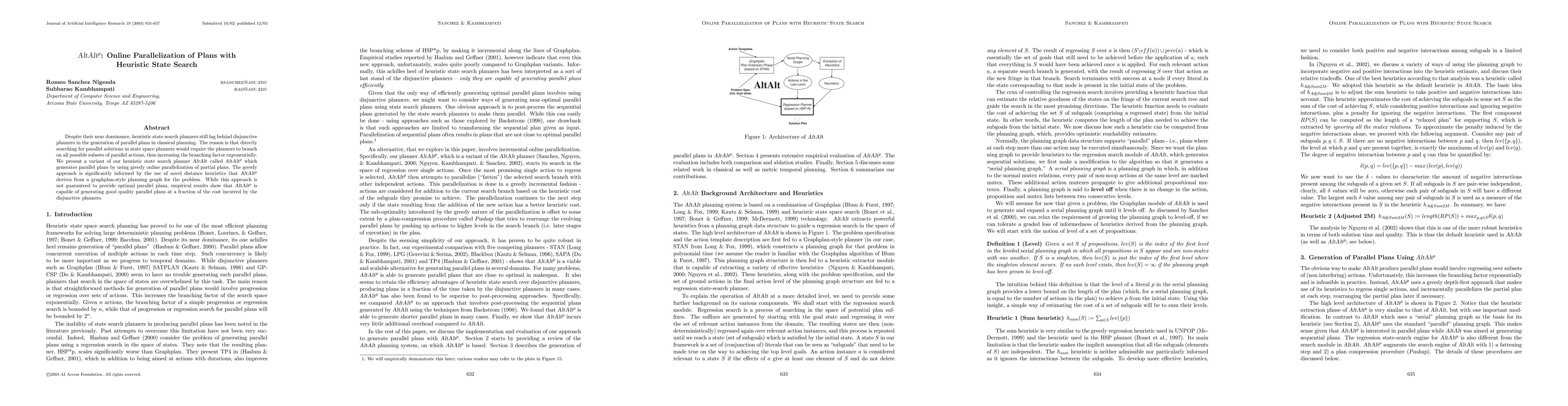 The paper introduces AltAltp, a variant of the AltAlt heuristic state search planner, which efficiently generates parallel plans through online parallelization of partial plans using novel distance heuristics derived from a planning graph. Although not optimal, empirical results demonstrate that AltAltp produces high-quality parallel plans at a significantly lower computational cost compared to disjunctive planners.