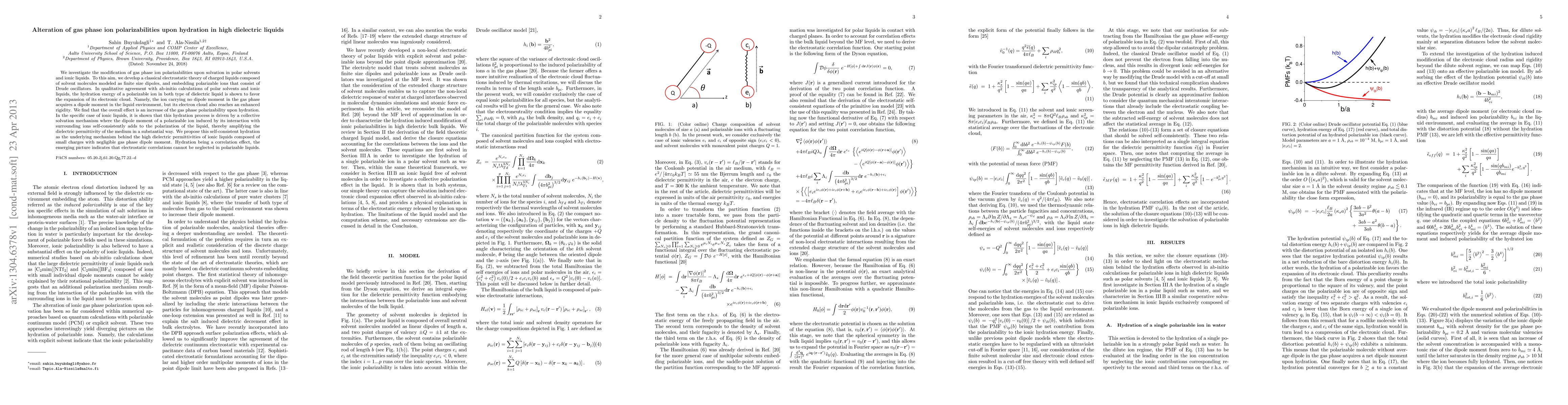 We investigate the modification of gas phase ion polarizabilities upon solvation in polar solvents and ionic liquids. To this aim, we develop a classical electrostatic theory of charged liquids composed of solvent molecules modeled as finite size dipoles, and embedding polarizable ions that consist of Drude oscillators. In qualitative agreement with ab-initio calculations of polar solvents and ionic liquids, the hydration energy of a polarizable ion in both type of dielectric liquid is shown to favor the expansion of its electronic cloud. Namely, the ion carrying no dipole moment in the gas phase acquires a dipole moment in the liquid environment, but its electron cloud also reaches an enhanced rigidity. We find that the overall effect is an increase of the gas phase polarizability upon hydration. In the specific case of ionic liquids, it is shown that this hydration process is driven by a collective solvation mechanism where the dipole moment of a polarizable ion induced by its interaction with surrounding ions self-consistently adds to the polarization of the liquid, thereby amplifying the dielectric permittivity of the medium in a substantial way. We propose this self-consistent hydration as the underlying mechanism behind the high dielectric permittivities of ionic liquids composed of small charges with negligible gas phase dipole moment. Hydration being a correlation effect, the emerging picture indicates that electrostatic correlations cannot be neglected in polarizable liquids.