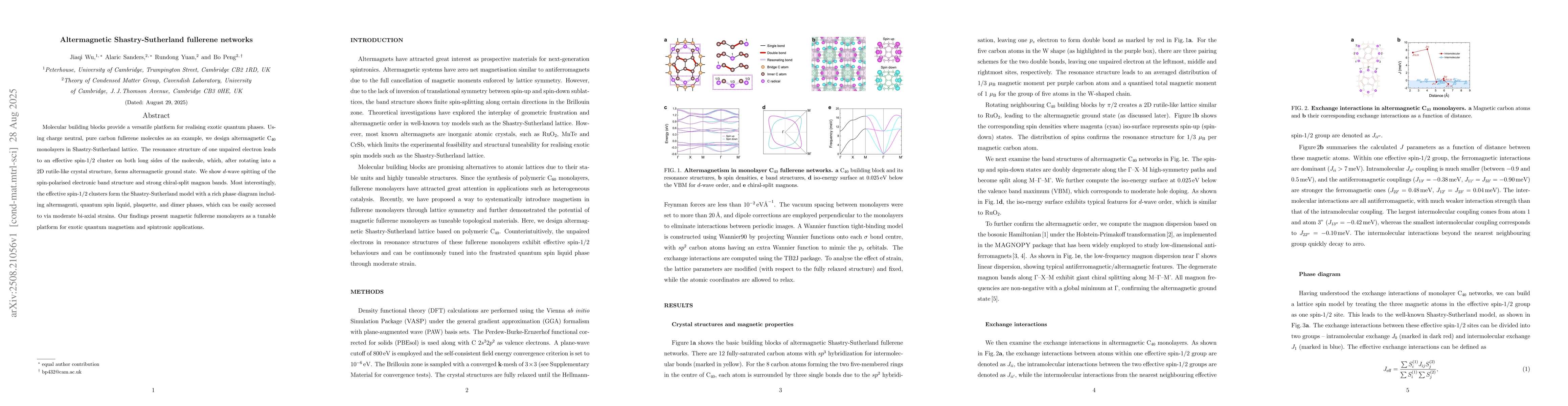 Molecular building blocks provide a versatile platform for realising exotic quantum phases. Using charge neutral, pure carbon fullerene molecules as an example, we design altermagnetic C$_{40}$ monolayers in Shastry-Sutherland lattice. The resonance structure of one unpaired electron leads to an effective spin-1/2 cluster on both long sides of the molecule, which, after rotating into a 2D rutile-like crystal structure, forms altermagnetic ground state. We show $d$-wave spitting of the spin-polarised electronic band structure and strong chiral-split magnon bands. Most interestingly, the effective spin-1/2 clusters form the Shastry-Sutherland model with a rich phase diagram including altermagenti, quantum spin liquid, plaquette, and dimer phases, which can be easily accessed to via moderate bi-axial strains. Our findings present magnetic fullerene monolayers as a tunable platform for exotic quantum magnetism and spintronic applications.