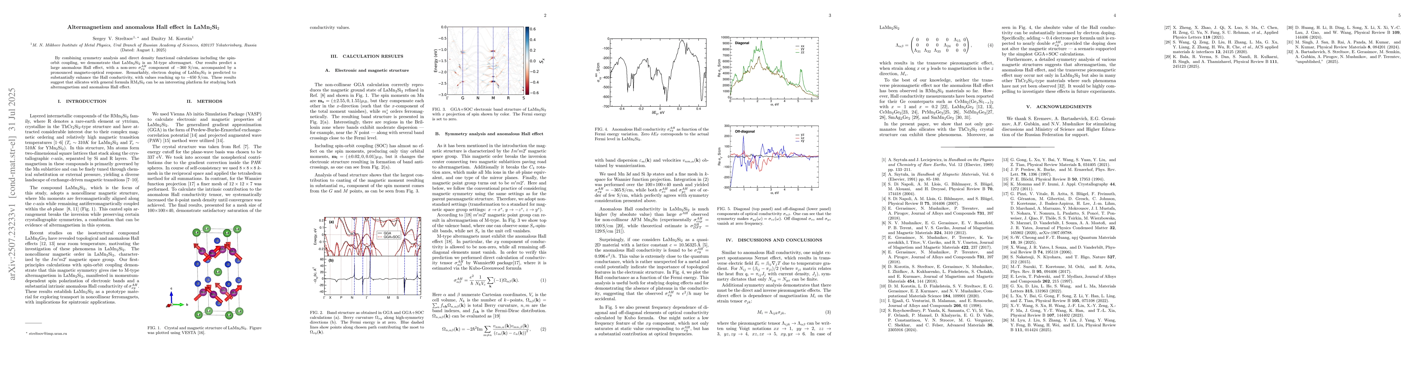 By combining symmetry analysis and direct density functional calculations including the spin-orbit coupling, we demonstrate that LaMn2Si2 is an M-type altermagnet. Our results predict a large anomalous Hall effect, with a non-zero xy component of -360 S/cm, accompanied by a pronounced magneto-optical response. Remarkably, electron doping of LaMn2Si2 is predicted to substantially enhance the Hall conductivity, with values reaching up to -650 S/cm. These results suggest that silicates with general formula RM2Si2 can be an interesting platform for studying both altermagnetism and anomalous Hall effect.