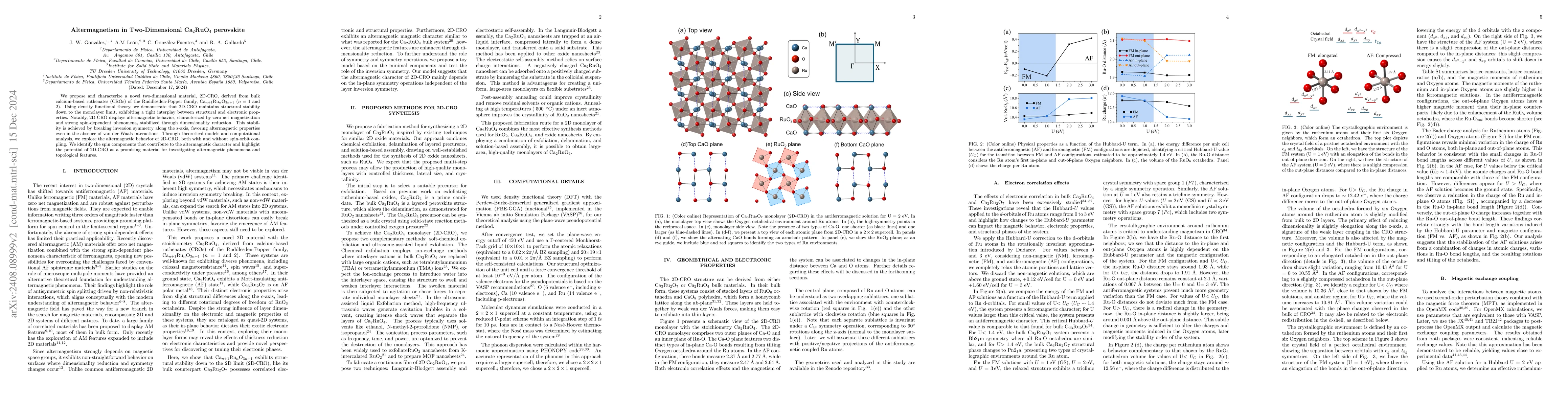 The paper investigates a novel two-dimensional perovskite material, 2D-CRO, which shows altermagnetic behavior due to broken inversion symmetry, despite having zero net magnetization. Density functional theory reveals its structural stability and potential for studying spin-dependent phenomena.