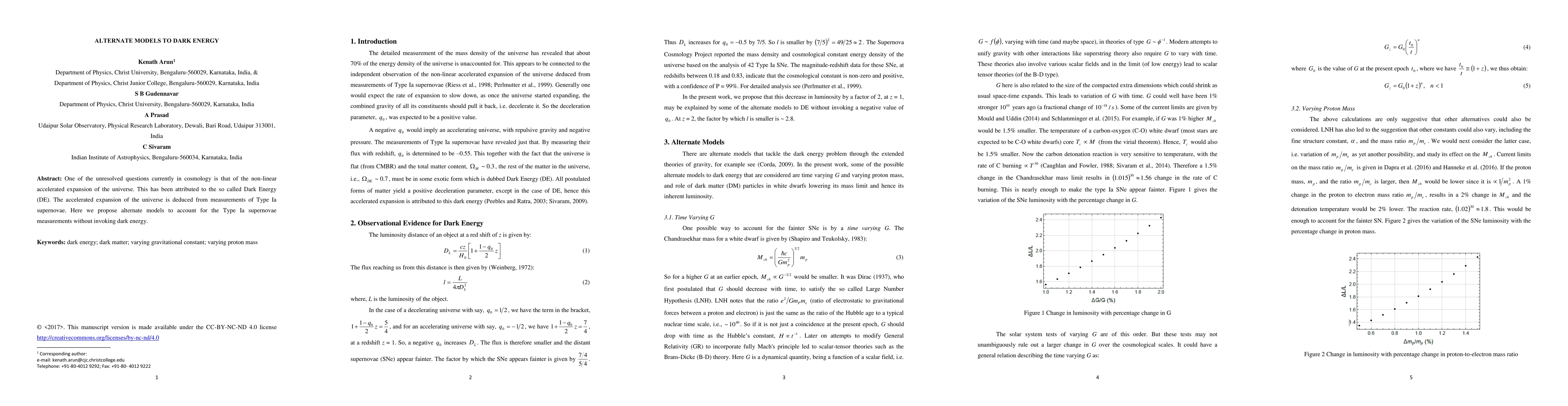 One of the unresolved questions currently in cosmology is that of the non-linear accelerated expansion of the universe. This has been attributed to the so called Dark Energy (DE). The accelerated expansion of the universe is deduced from measurements of Type Ia supernovae. Here we propose alternate models to account for the Type Ia supernovae measurements without invoking dark energy.