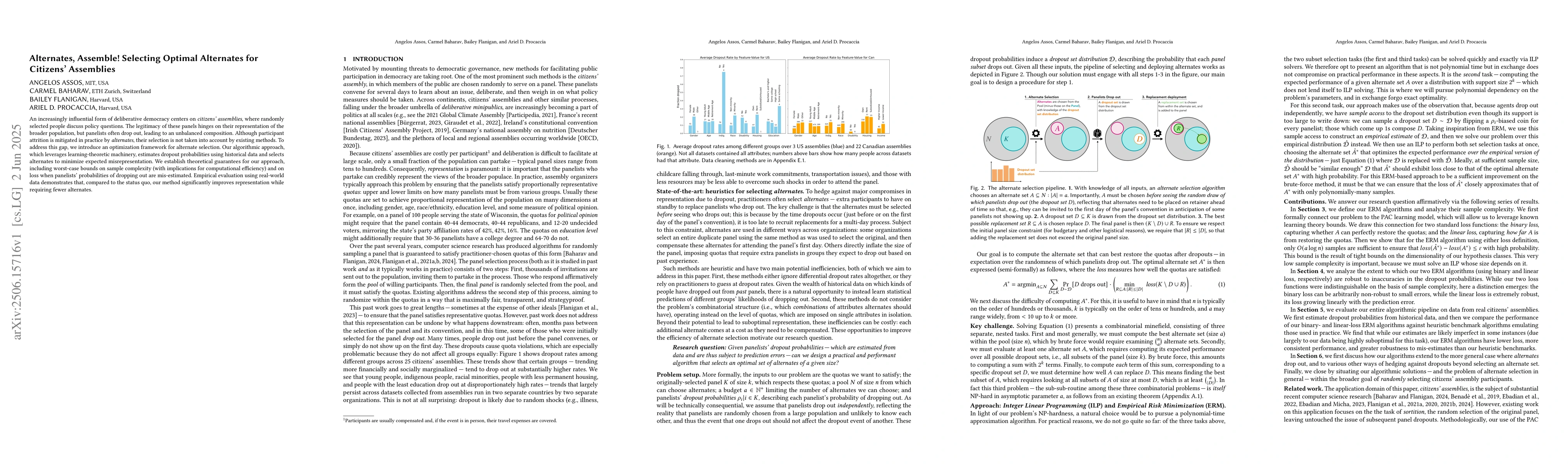 An increasingly influential form of deliberative democracy centers on citizens' assemblies, where randomly selected people discuss policy questions. The legitimacy of these panels hinges on their representation of the broader population, but panelists often drop out, leading to an unbalanced composition. Although participant attrition is mitigated in practice by alternates, their selection is not taken into account by existing methods. To address this gap, we introduce an optimization framework for alternate selection. Our algorithmic approach, which leverages learning-theoretic machinery, estimates dropout probabilities using historical data and selects alternates to minimize expected misrepresentation. We establish theoretical guarantees for our approach, including worst-case bounds on sample complexity (with implications for computational efficiency) and on loss when panelists' probabilities of dropping out are mis-estimated. Empirical evaluation using real-world data demonstrates that, compared to the status quo, our method significantly improves representation while requiring fewer alternates.