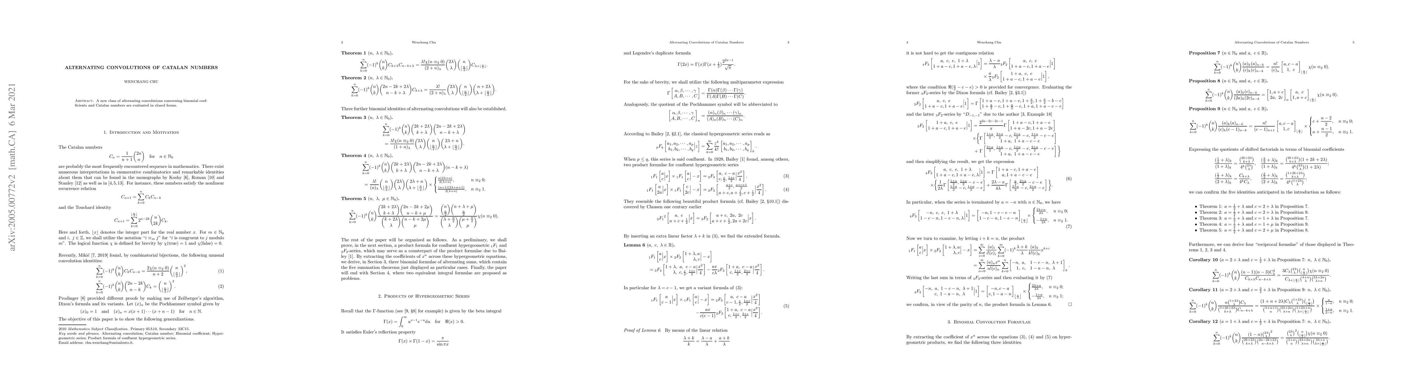 This paper evaluates a new class of alternating convolutions involving binomial coefficients and Catalan numbers, providing closed-form solutions for these expressions. The results expand the understanding of combinatorial structures and their convolutions.
