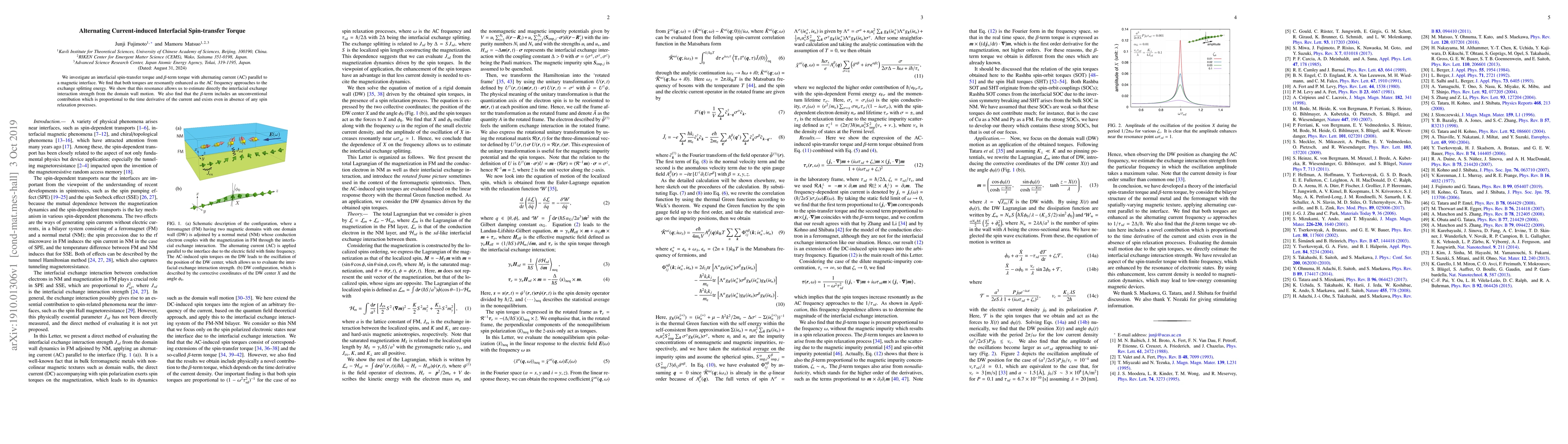 The paper presents a theory of interfacial spin-transfer torque and β-term torque, considering a bilayer structure of a normal metal and a ferromagnet with spatially-varying magnetic texture under alternating current.