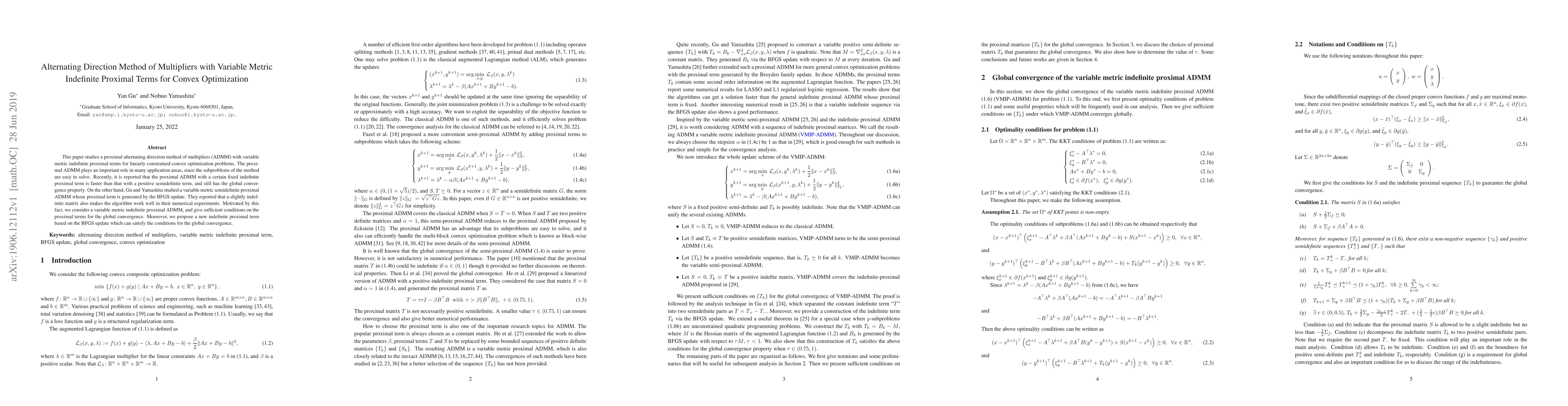 This paper proposes a proximal alternating direction method of multipliers (ADMM) with variable metric indefinite proximal terms for convex optimization, showing that such terms can enhance convergence speed while maintaining global convergence. It introduces a new indefinite proximal term based on the BFGS update to meet the convergence conditions.