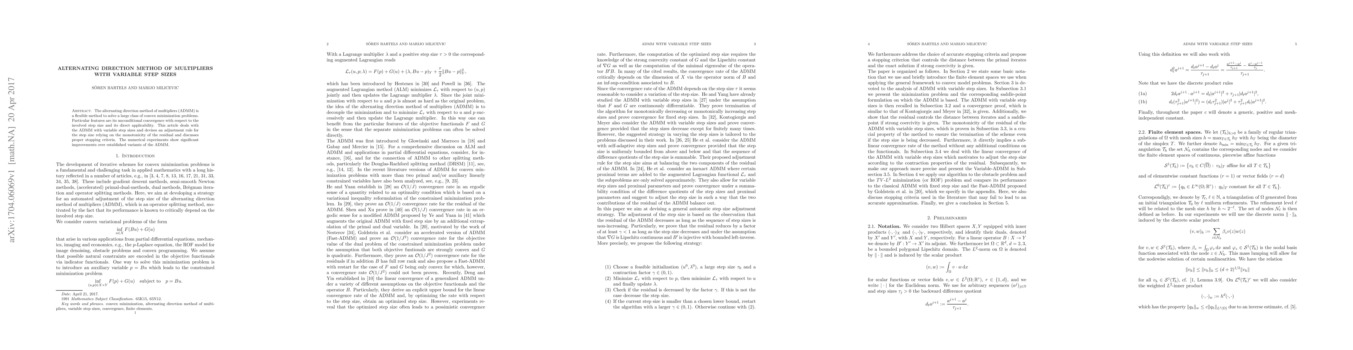This paper proposes an ADMM variant with adaptive step sizes based on residual monotonicity, demonstrating improved performance over traditional ADMM methods through numerical experiments. It also discusses appropriate stopping criteria for the algorithm.