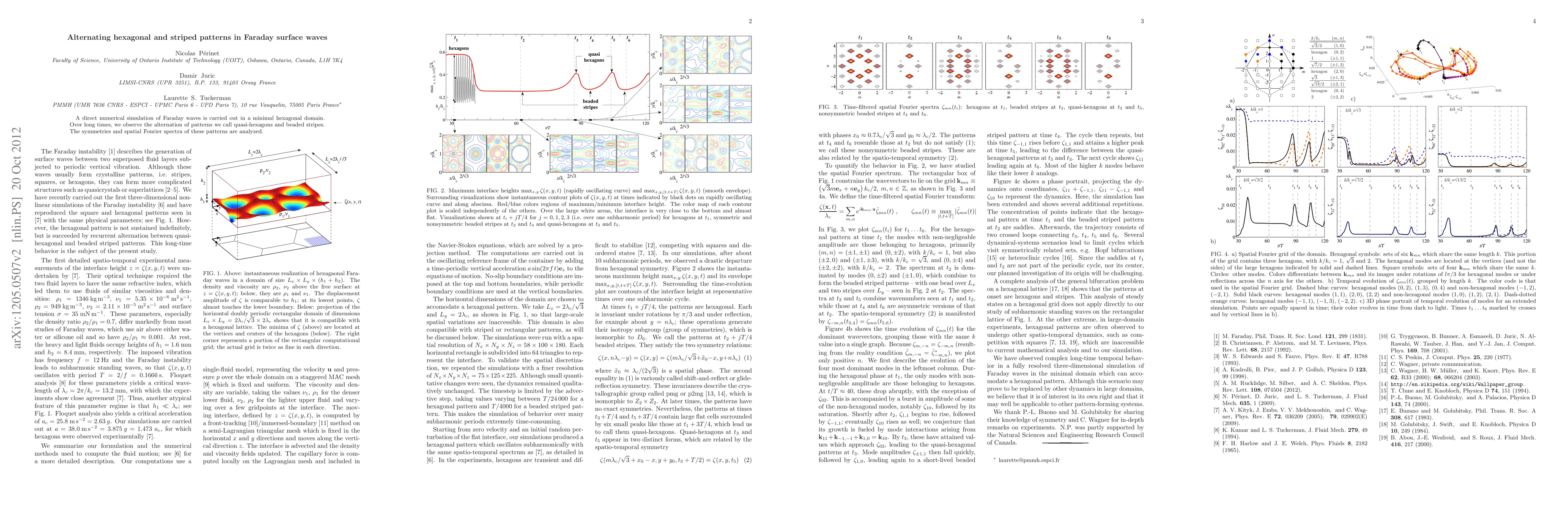 A direct numerical simulation of Faraday waves is carried out in a minimal hexagonal domain. Over long times, we observe the alternation of patterns we call quasi-hexagons and beaded stripes. The symmetries and spatial Fourier spectra of these patterns are analyzed.