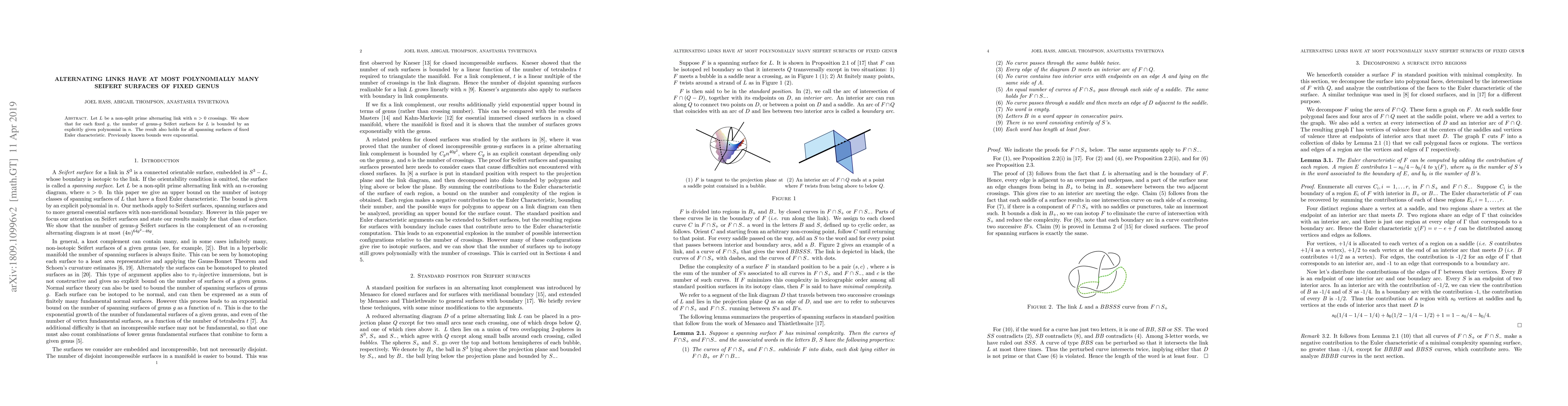 This paper demonstrates that non-split prime alternating links with a fixed number of crossings have at most a polynomially bounded number of genus-$g$ Seifert surfaces, improving upon previously known exponential bounds. The result extends to all spanning surfaces with fixed Euler characteristic.