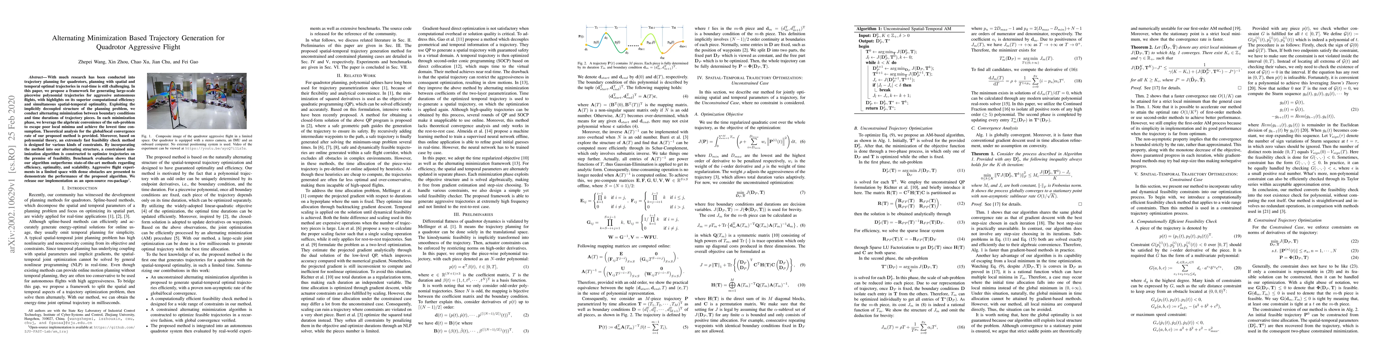 This paper proposes an efficient alternating minimization framework for generating large-scale, optimal piecewise polynomial trajectories for quadrotor aggressive flight, achieving both spatial and temporal optimality. The method leverages an alternating minimization approach to solve complex planning problems, ensuring computational efficiency and feasibility, and is shown to outperform existing methods in benchmark evaluations.
