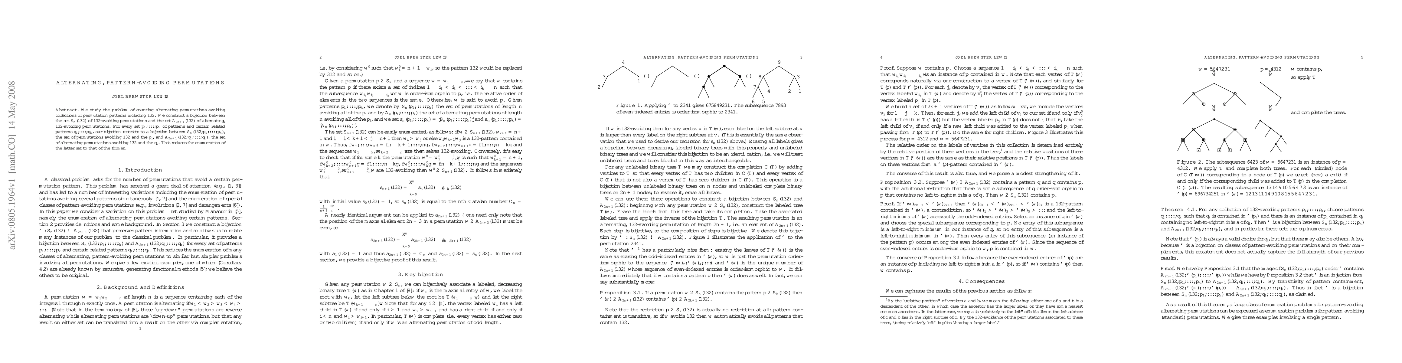 This research constructs a bijection to enumerate alternating, pattern-avoiding permutations, specifically focusing on 132-avoiding permutations. The bijection simplifies the counting of alternating permutations by linking them to permutations avoiding certain patterns.