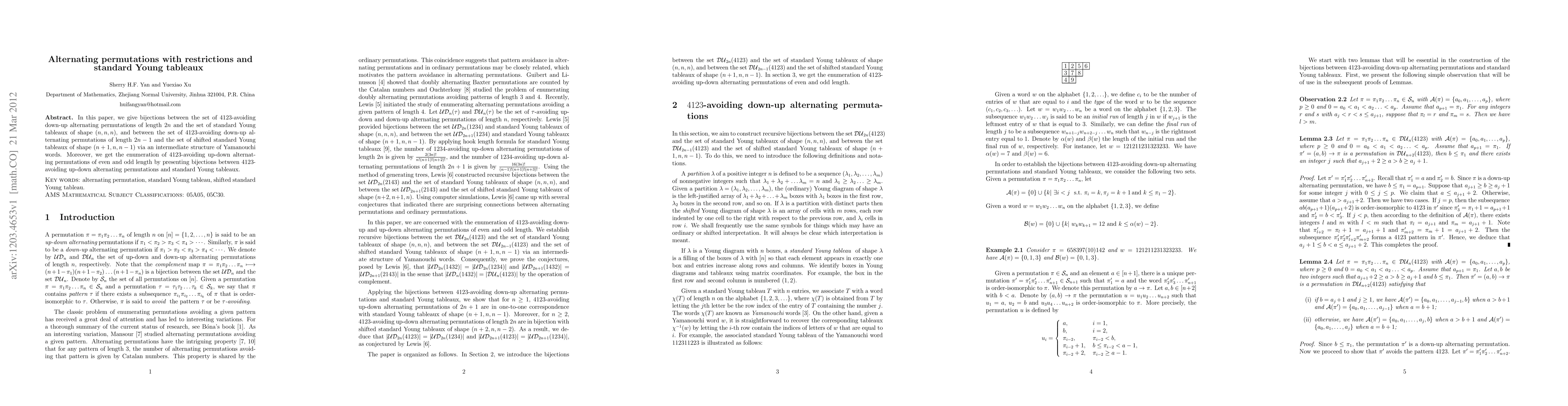 This paper establishes bijections between specific types of 4123-avoiding alternating permutations and standard/shifted Young tableaux, using Yamanouchi words as an intermediate structure, and enumerates these permutations by relating them to Young tableaux.