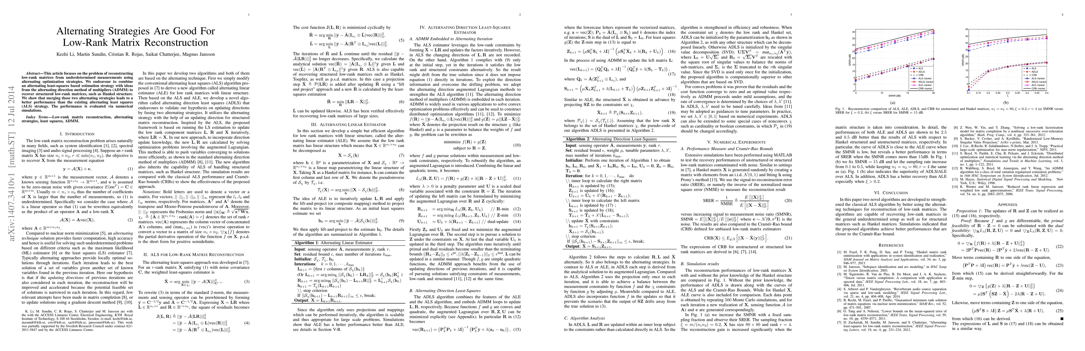 This paper proposes combining alternating least-squares with ADMM for reconstructing low-rank matrices from underdetermined measurements, demonstrating superior performance over traditional ALS methods through numerical simulations.