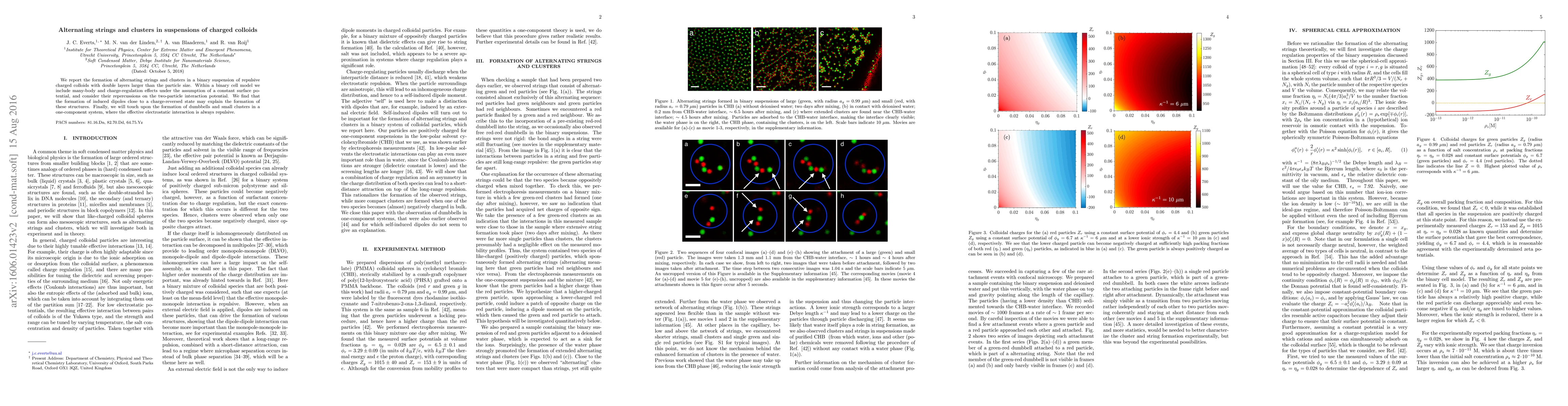 This study investigates the formation of alternating strings and clusters in binary suspensions of charged colloids, revealing that induced dipoles near a charge-reversed state drive these structures. The research also explores the implications of effective repulsive electrostatic interactions in one-component systems.