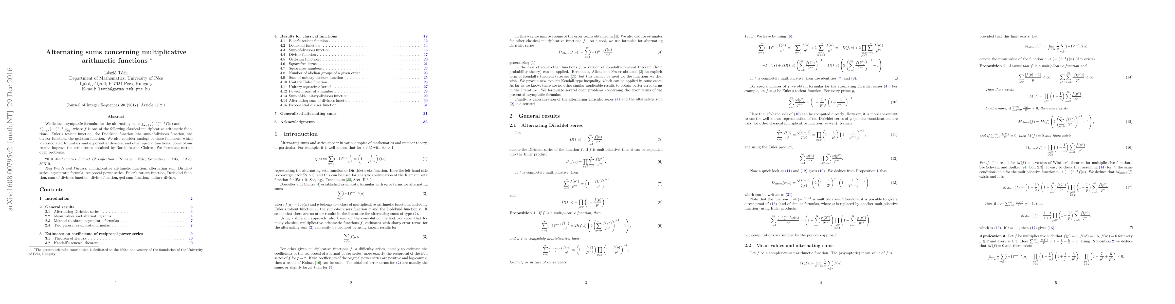 This paper derives asymptotic formulas for alternating sums involving classical multiplicative arithmetic functions and their analogs, improving upon previous error terms and identifying new open problems in the process. The research extends to unitary and exponential divisors and other special functions.
