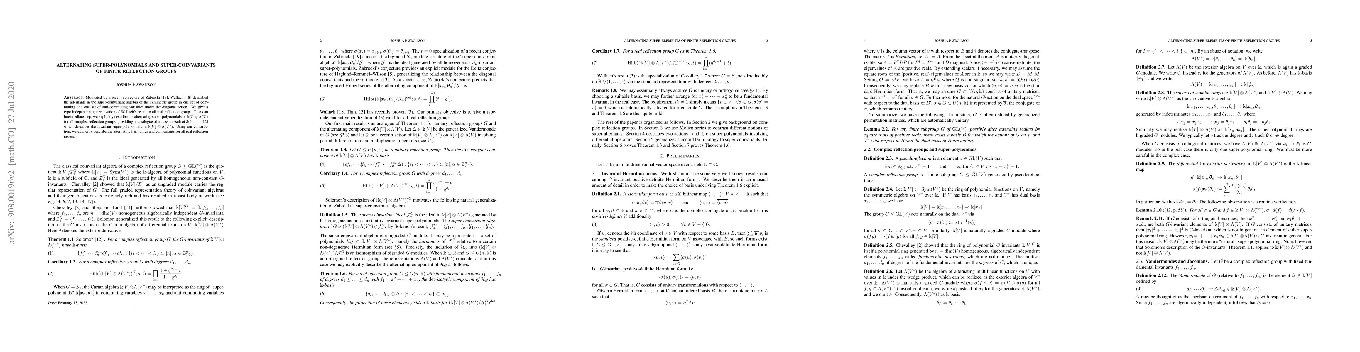 Motivated by a recent conjecture of Zabrocki, Wallach described the alternants in the super-coinvariant algebra of the symmetric group in one set of commuting and one set of anti-commuting variables under the diagonal action. We give a type-independent generalization of Wallach's result to all real reflection groups $G$. As an intermediate step, we explicitly describe the alternating super-polynomials in $k[V] \otimes \Lambda(V)$ for all complex reflection groups, providing an analogue of a classic result of Solomon which describes the invariant super-polynomials in $k[V] \otimes \Lambda(V^*)$. Using our construction, we explicitly describe the alternating harmonics and coinvariants for all real reflection groups.