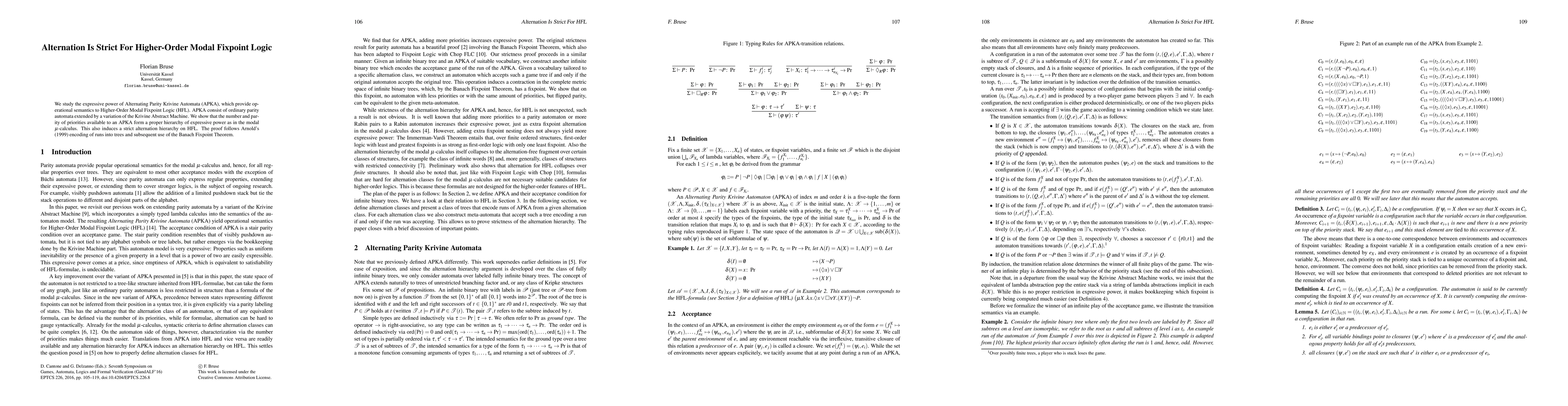 The paper studies the expressive power of Alternating Parity Krivine Automata (APKA) which provide operational semantics to Higher-Order Modal Fixpoint Logic (HFL). It demonstrates a hierarchy of expressive power similar to the modal mu-calculus, inducing a strict alternation hierarchy on HFL.