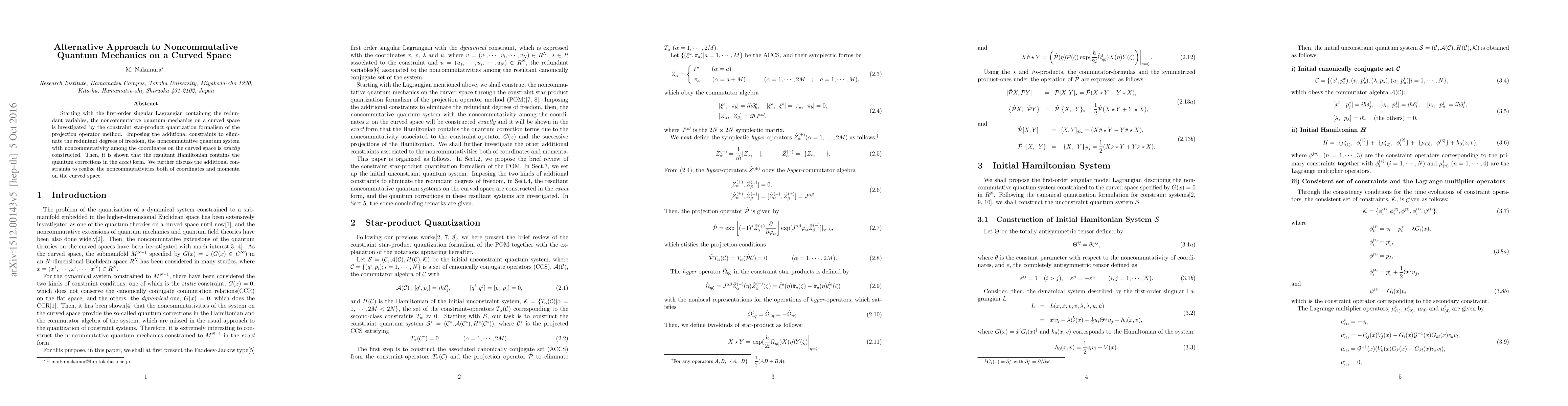 Starting with the first-order singular Lagrangian containing the redundant variables, the noncommutative quantum mechanics on a curved space is investigated by the constraint star-product quantization formalism of the projection operator method. Imposing the additional constraints to eliminate the reduntant degrees of freedom, the noncommutative quantum system with noncommutativity among the coordinates on the curved space is exactly constructed. Then, it is shown that the resultant Hamiltonian contains the quantum corrections in the exact form. We further discuss the additional constraints to realize the noncommutativities both of coordinates and momenta on the curved space.